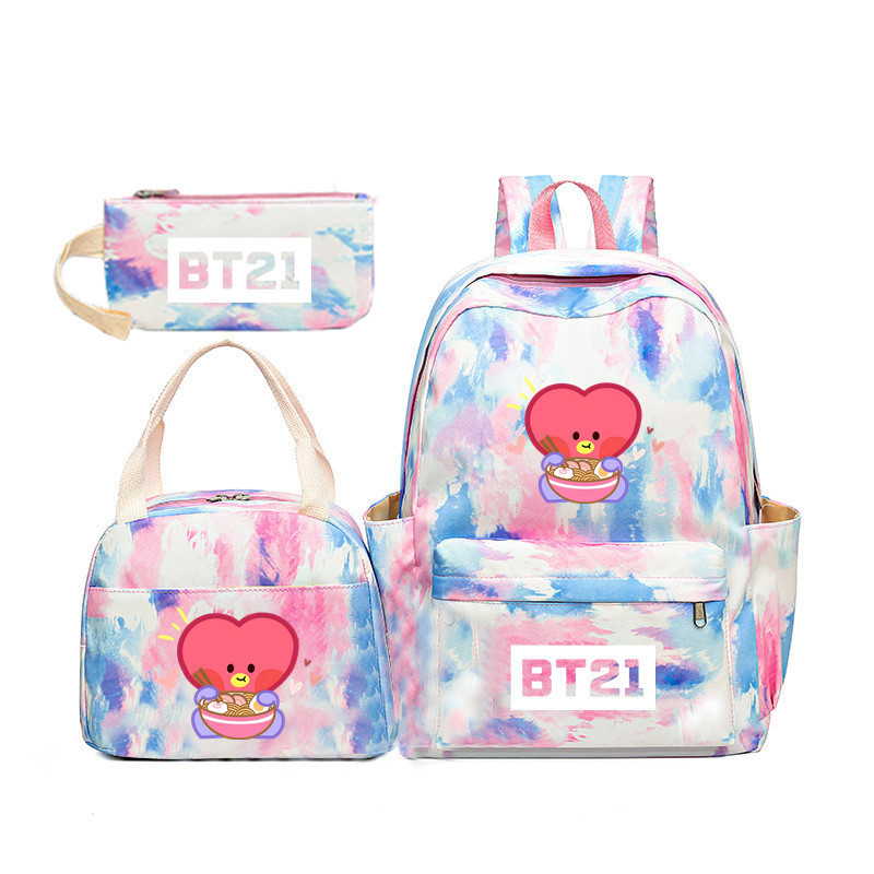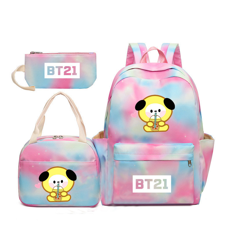 BTS 아기 만화 우유 차 그라디언트 컬러 레인보우 배낭 남녀 학생용 3 종 스쿨백스토어 가기