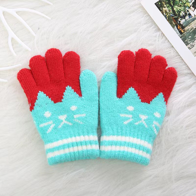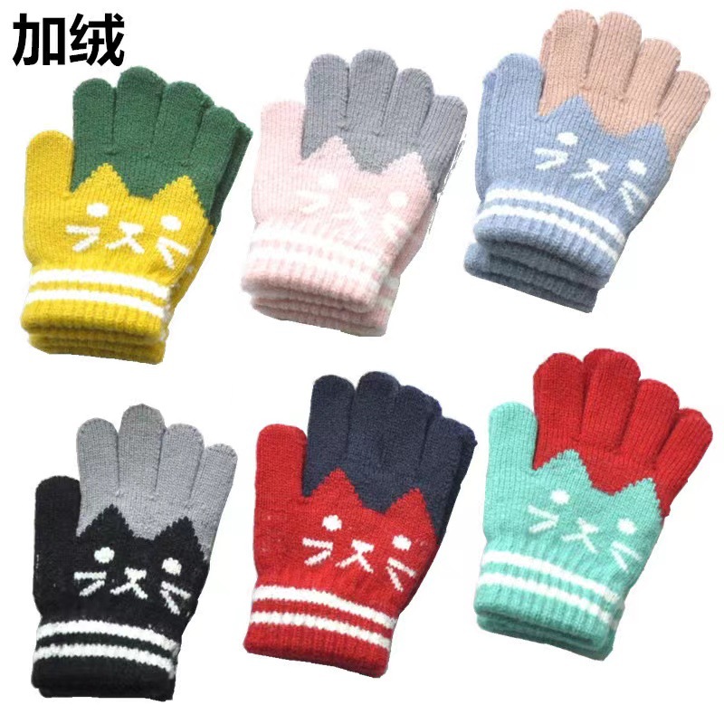 어린이 장갑 겨울 기모 냉난방 보온 기모 초등학생 소년 소녀 아기 세트 자카드 새끼 고양이 쓰기