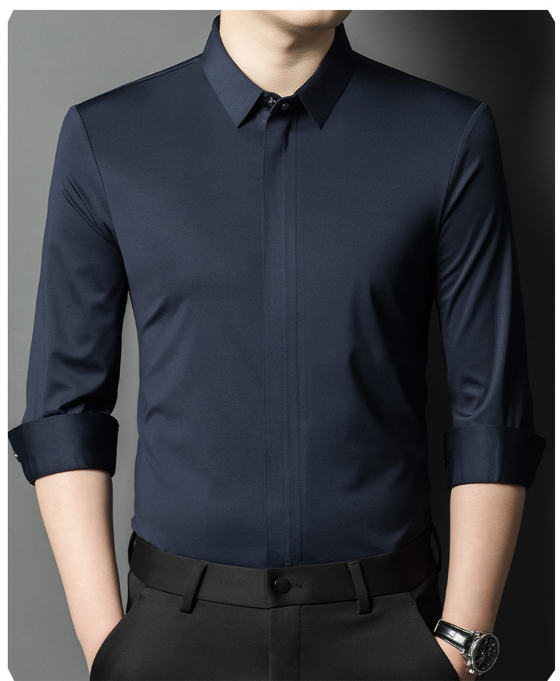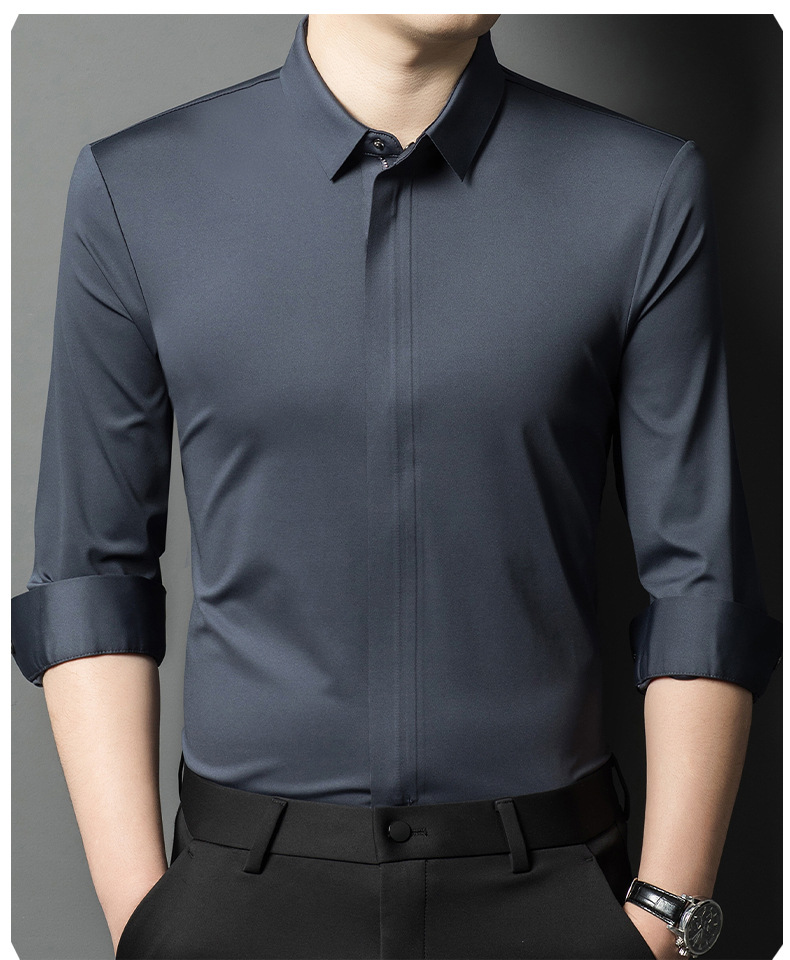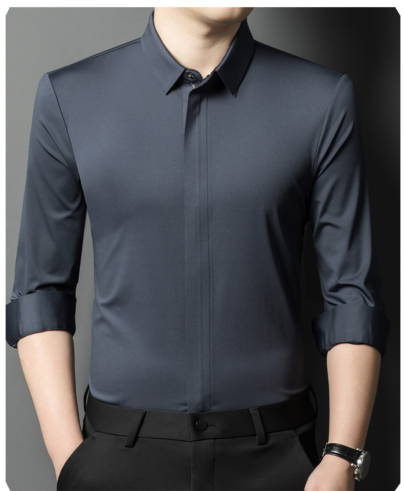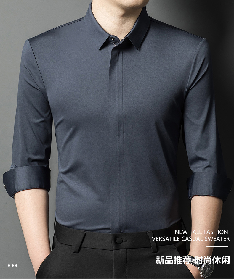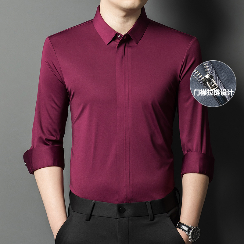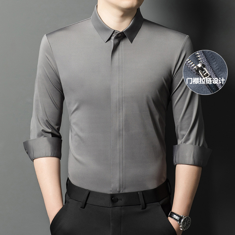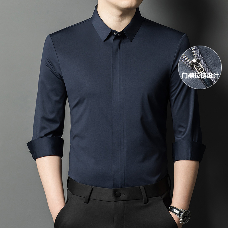 국경 간 폭발 남성 지퍼 셔츠 가을 새로운 중년 남성 긴팔 얇은 다크 플래켓 남성용 원활한 셔츠