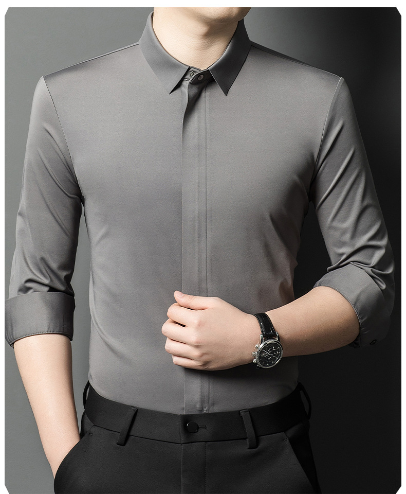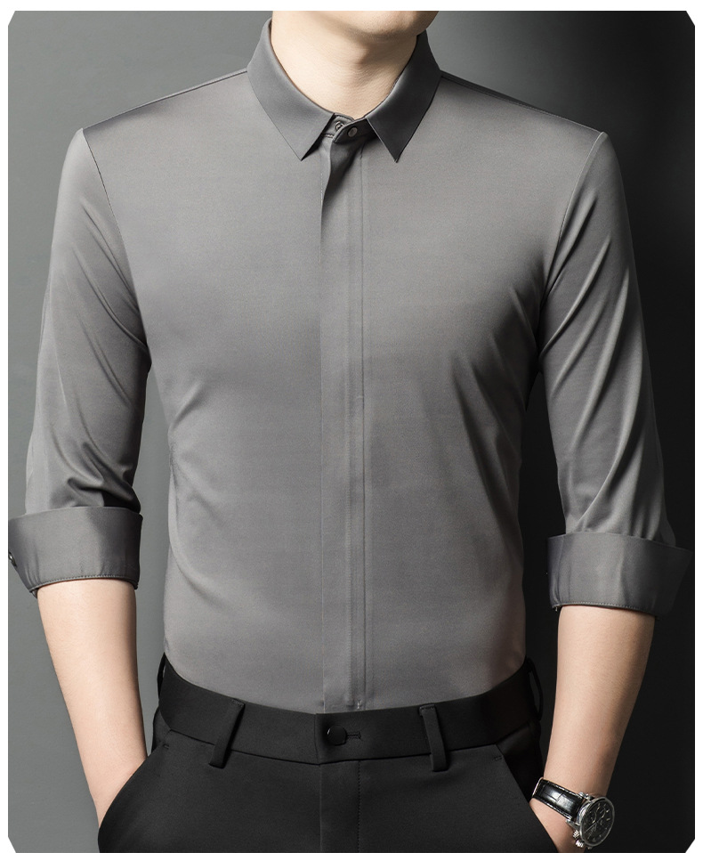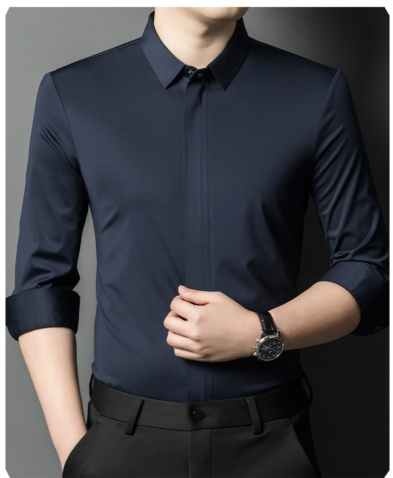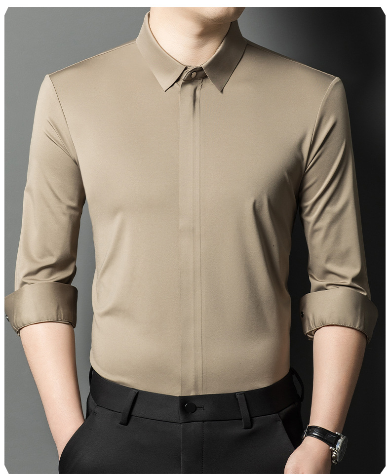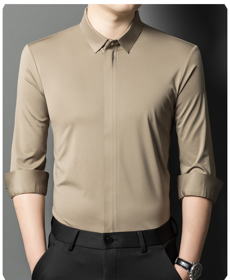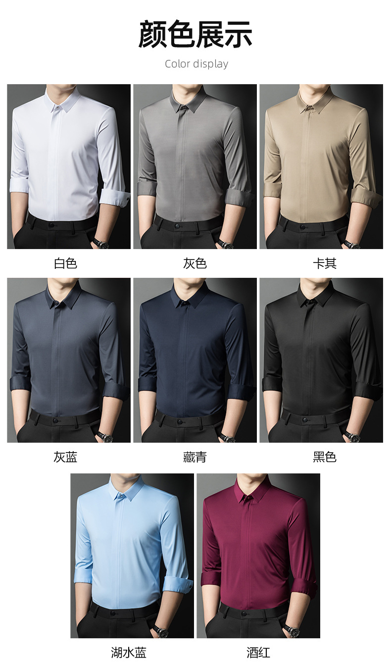 국경 간 폭발 남성 지퍼 셔츠 가을 새로운 중년 남성 긴팔 얇은 다크 플래켓 남성용 원활한 셔츠