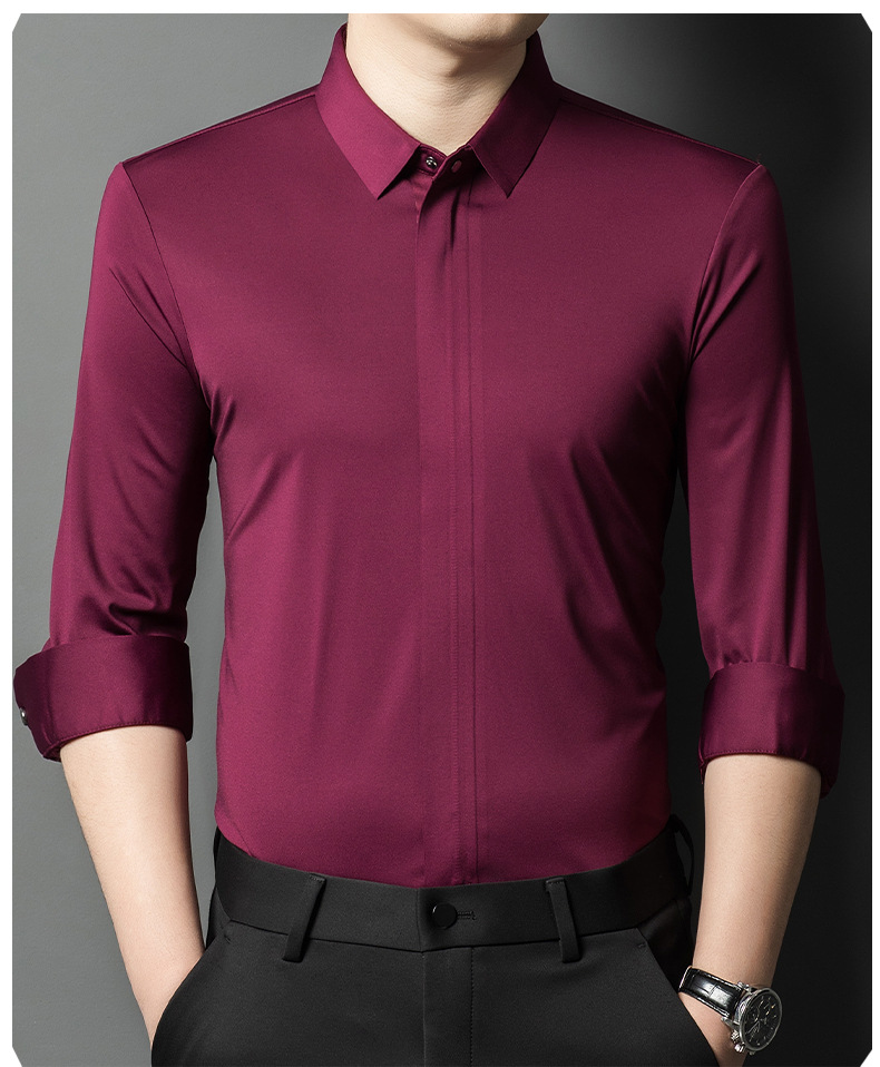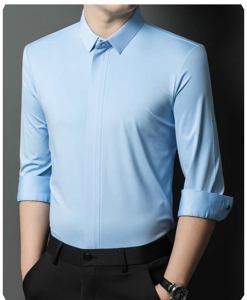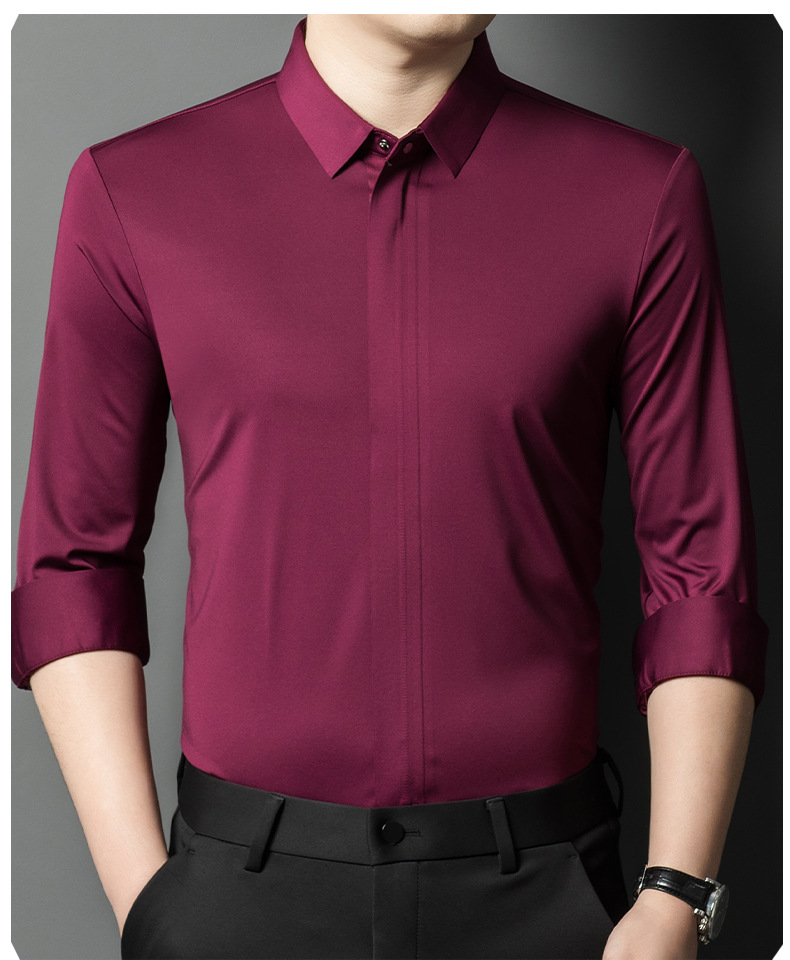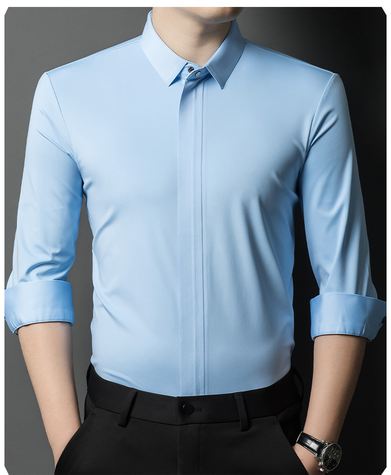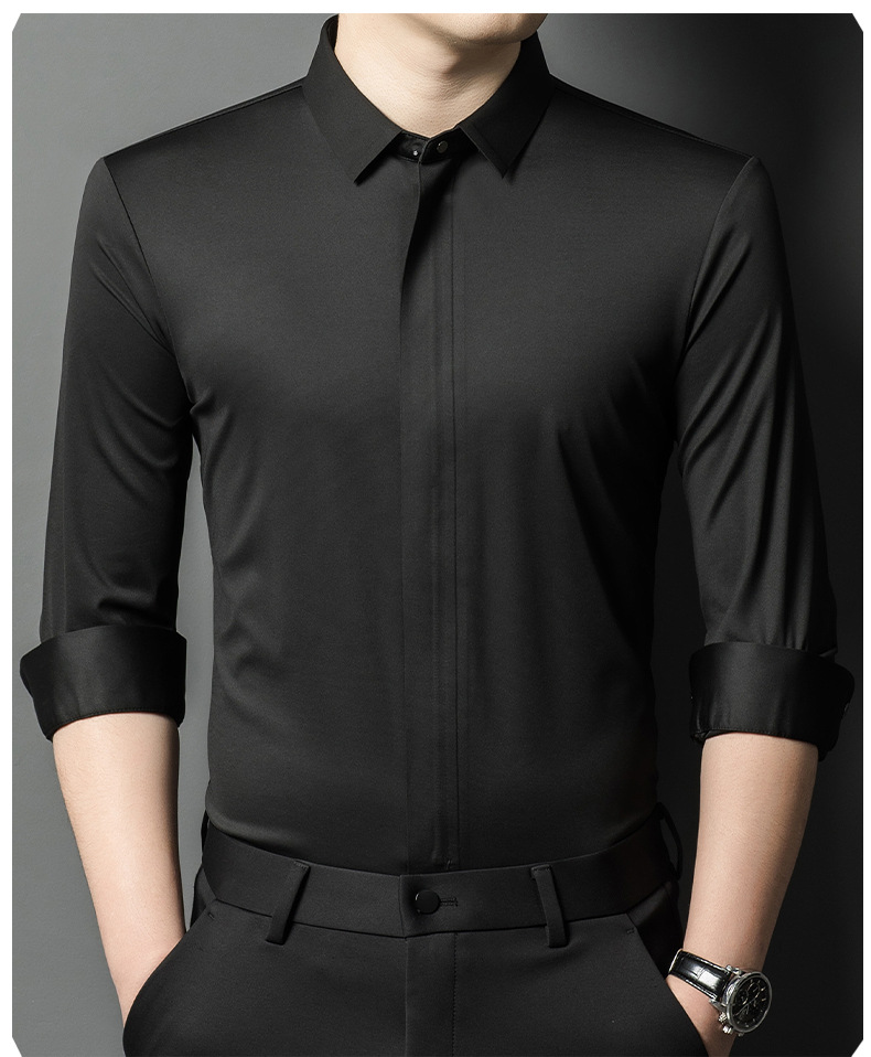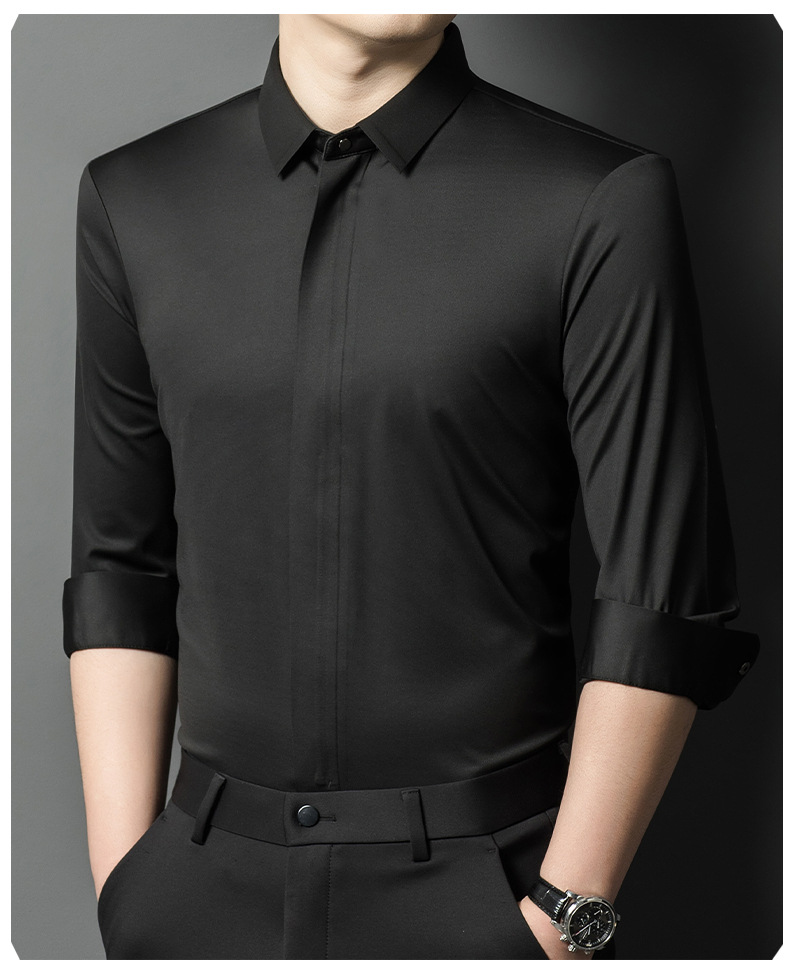 국경 간 폭발 남성 지퍼 셔츠 가을 새로운 중년 남성 긴팔 얇은 다크 플래켓 남성용 원활한 셔츠