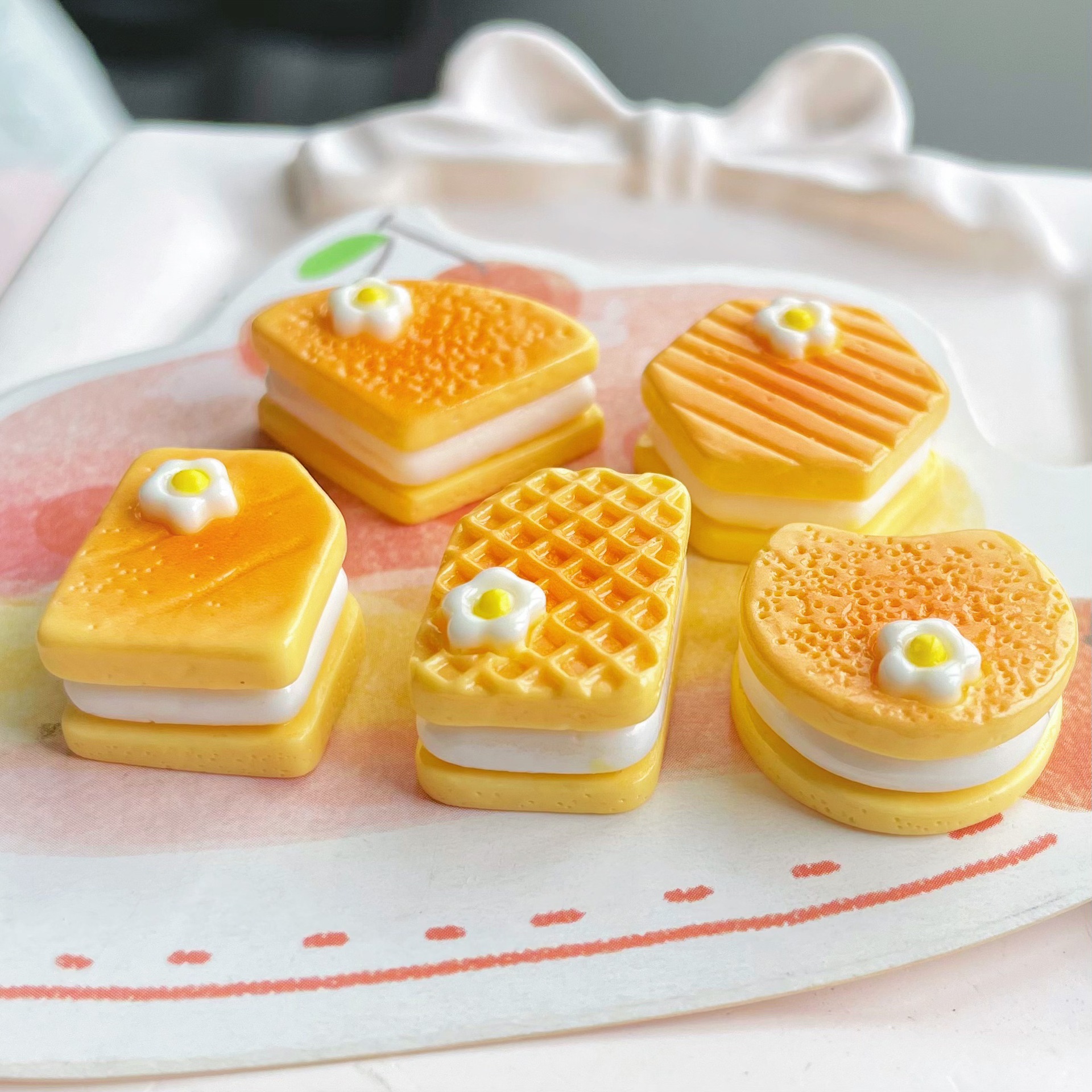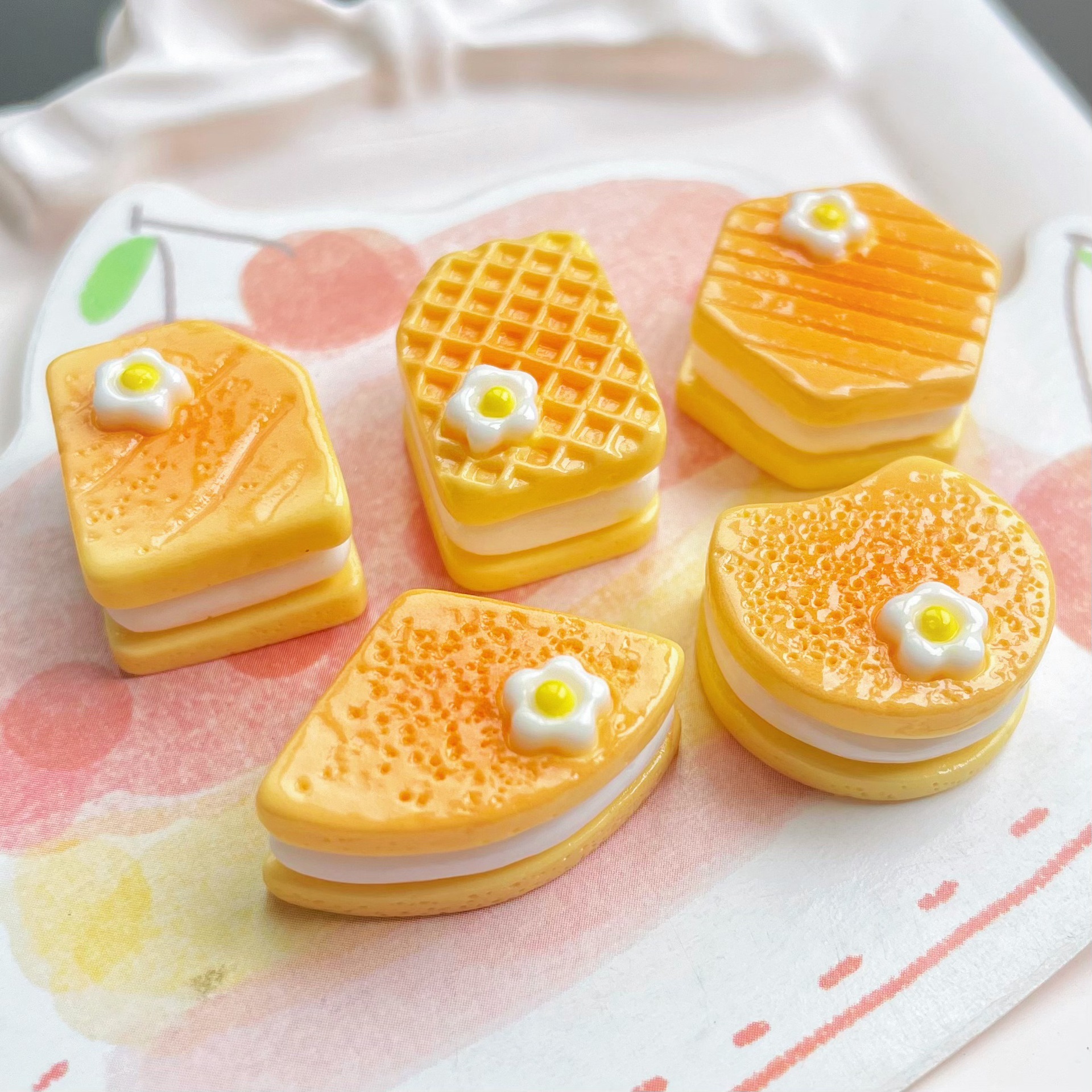 식품 및 플레이 노란색 플루 메리아 샌드위치 비스킷 수지 액세서리 크림 접착제 휴대 전화 쉘 헤드웨어 헤어핀 문구 상자 액세서리스토어 가기