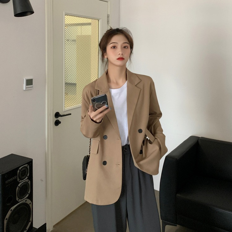 블랙 세트 재킷 여자 2024 봄과 가을 새로운 한국 스타일 느슨한 우아한 올 매치 긴 소매 세트 탑 Ins