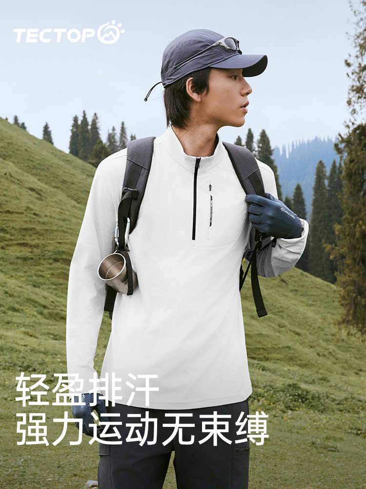 2024 가을과 겨울 새로운 야외 긴팔 티셔츠 남성용 수직 칼라 하프 지퍼 훈련 의류 스포츠 탑베이스 셔츠스토어 가기
