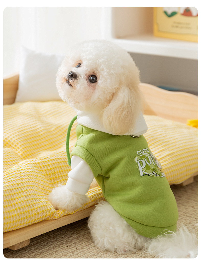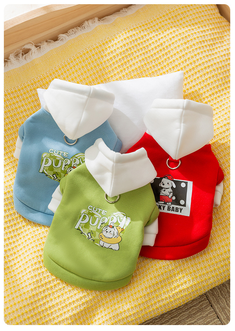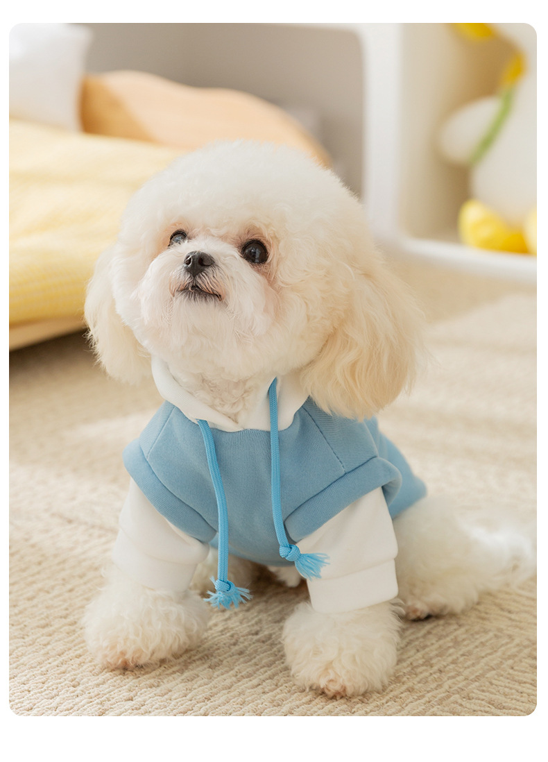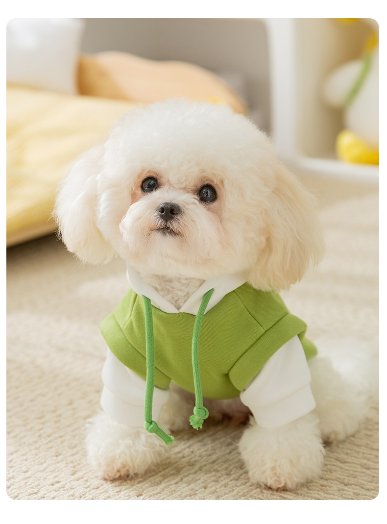 스티칭 컬러 조수 시원한 바람 드로 스트링 후드 조끼 긴 소매 작은 개 고양이 애완 동물 개 옷 도매스토어 가기
