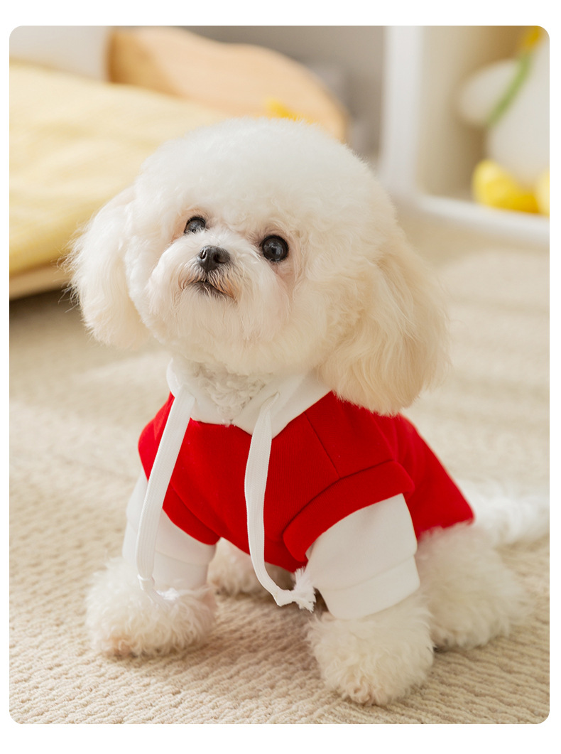 스티칭 컬러 조수 시원한 바람 드로 스트링 후드 조끼 긴 소매 작은 개 고양이 애완 동물 개 옷 도매