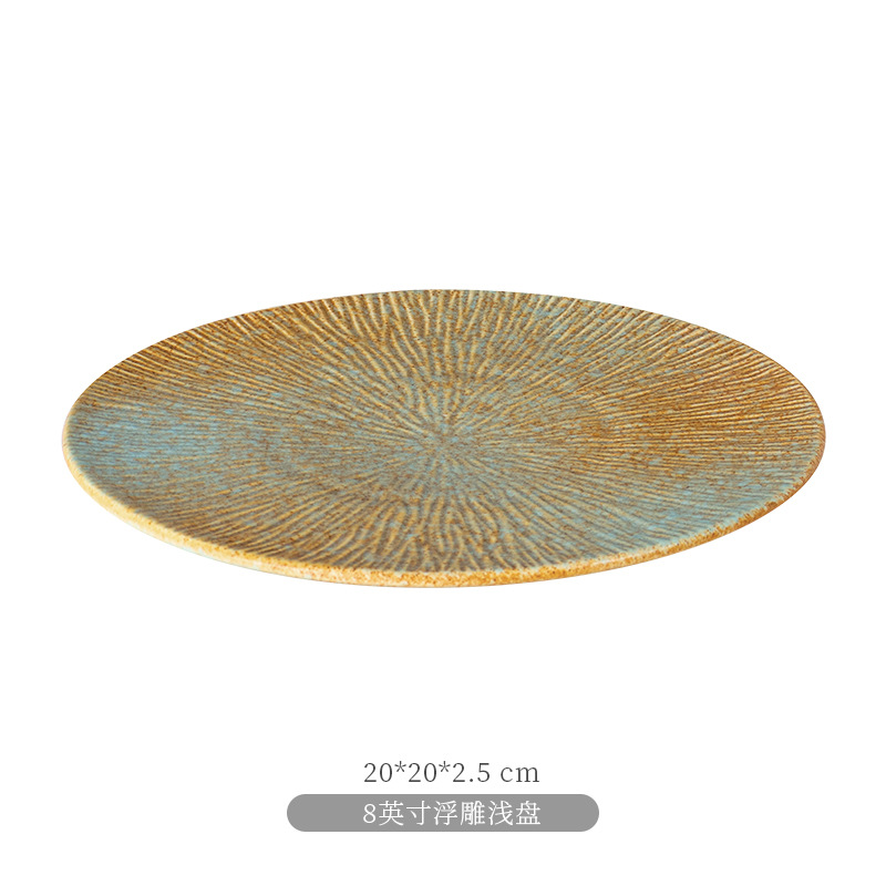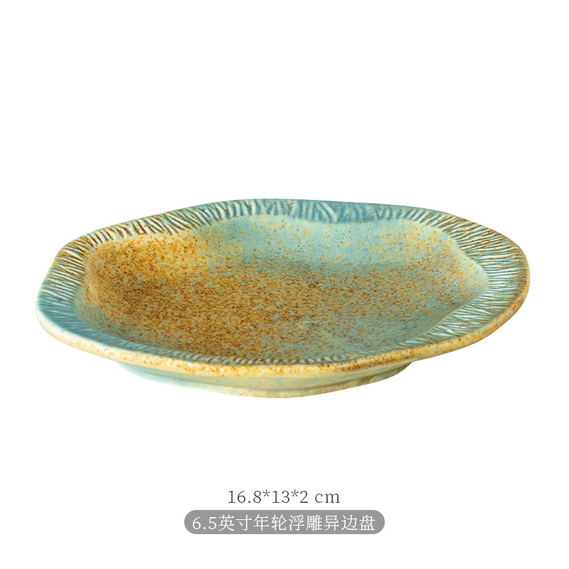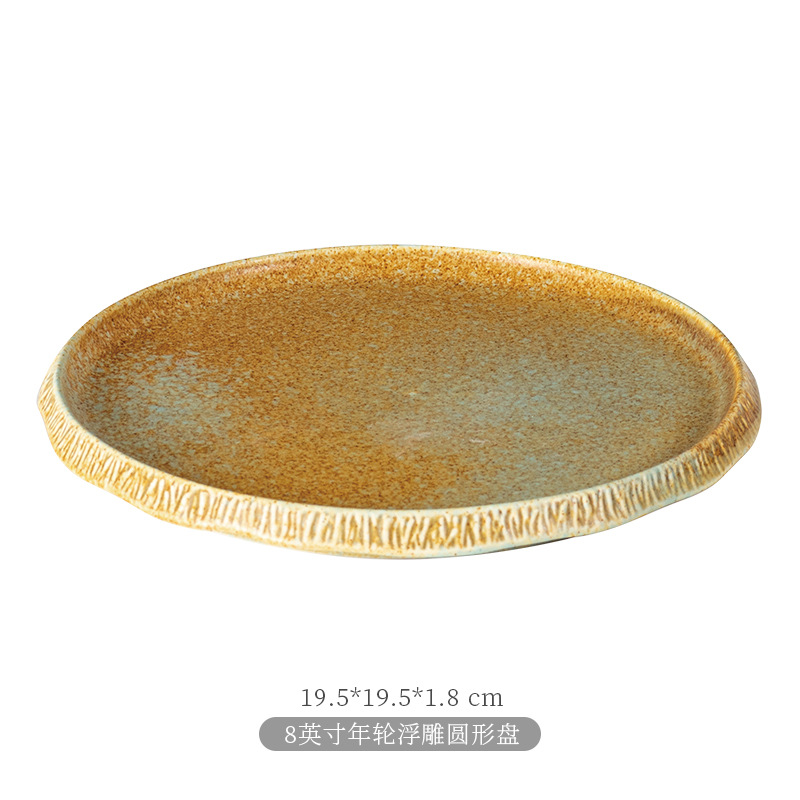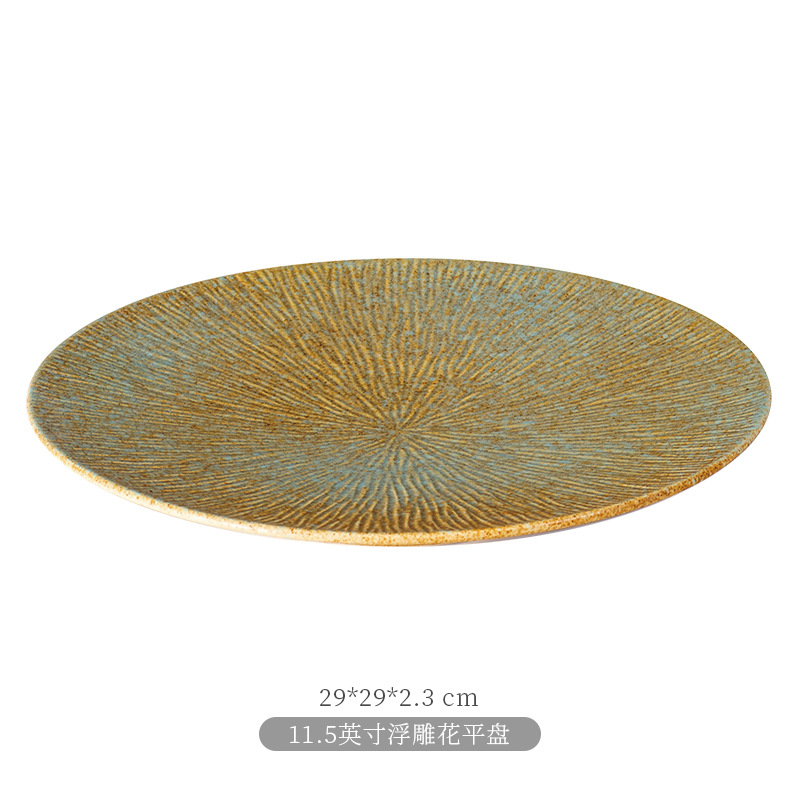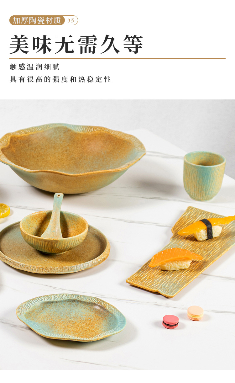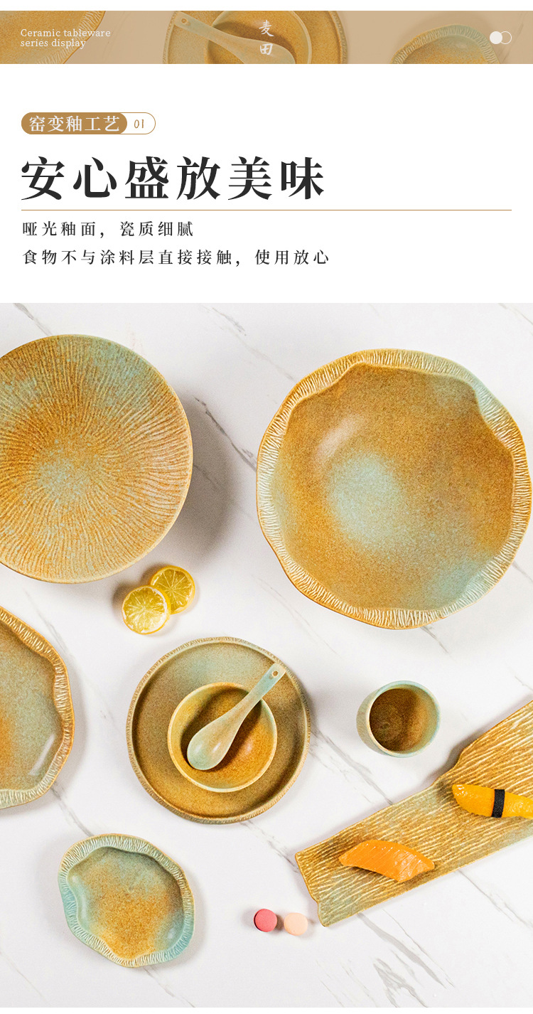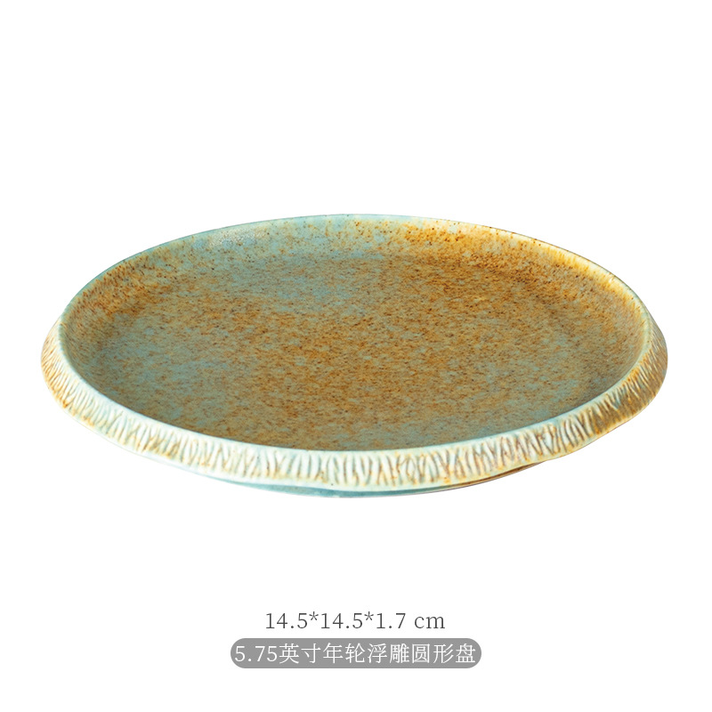 厂家批发哑光复古窑变陶瓷碗盘碟餐盘平盘寿司盘日式餐厅酒店餐具