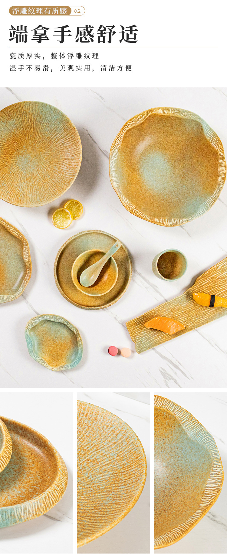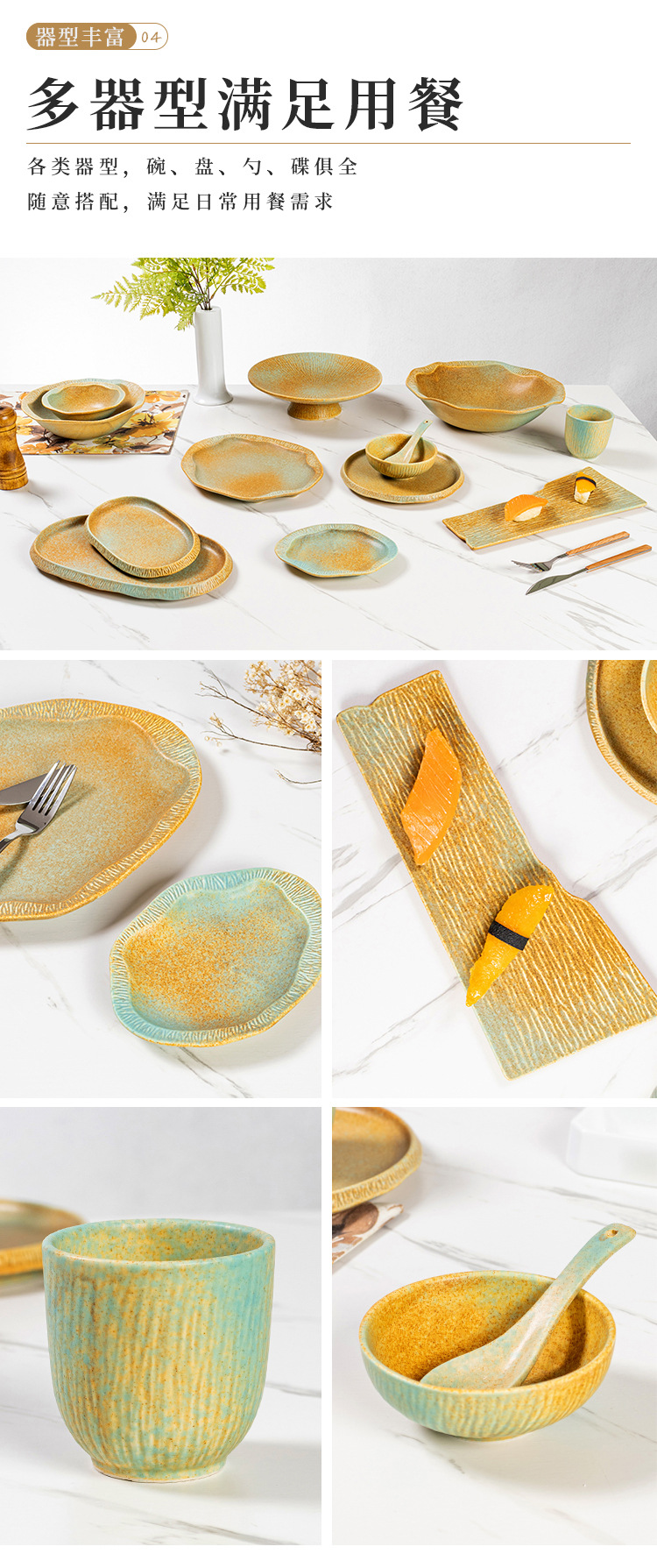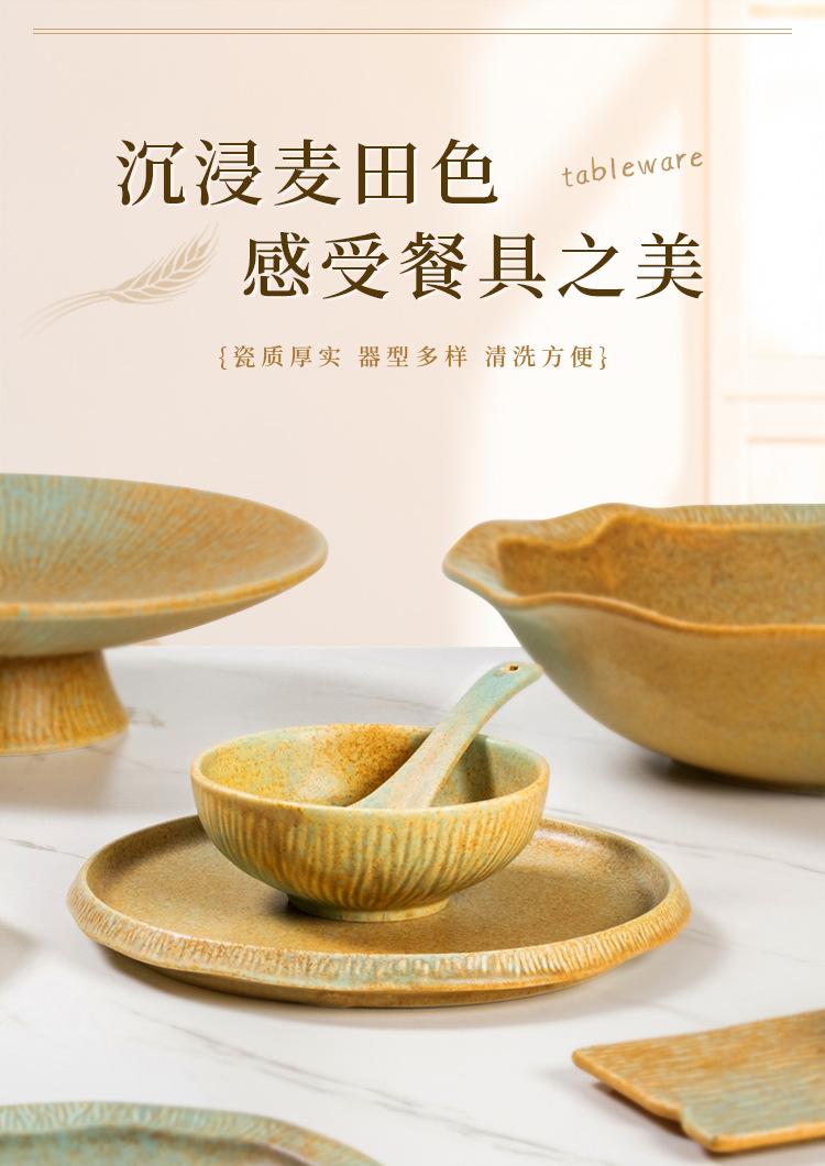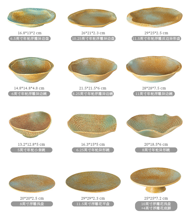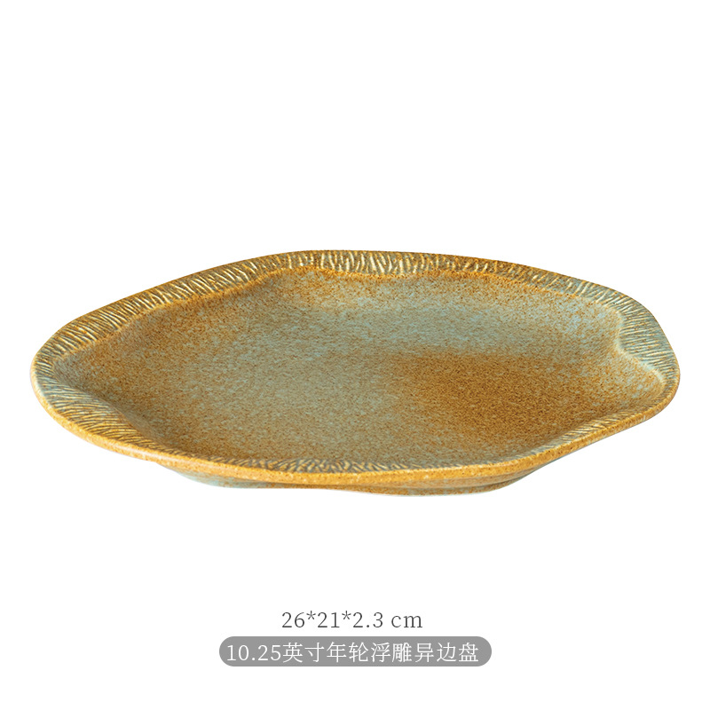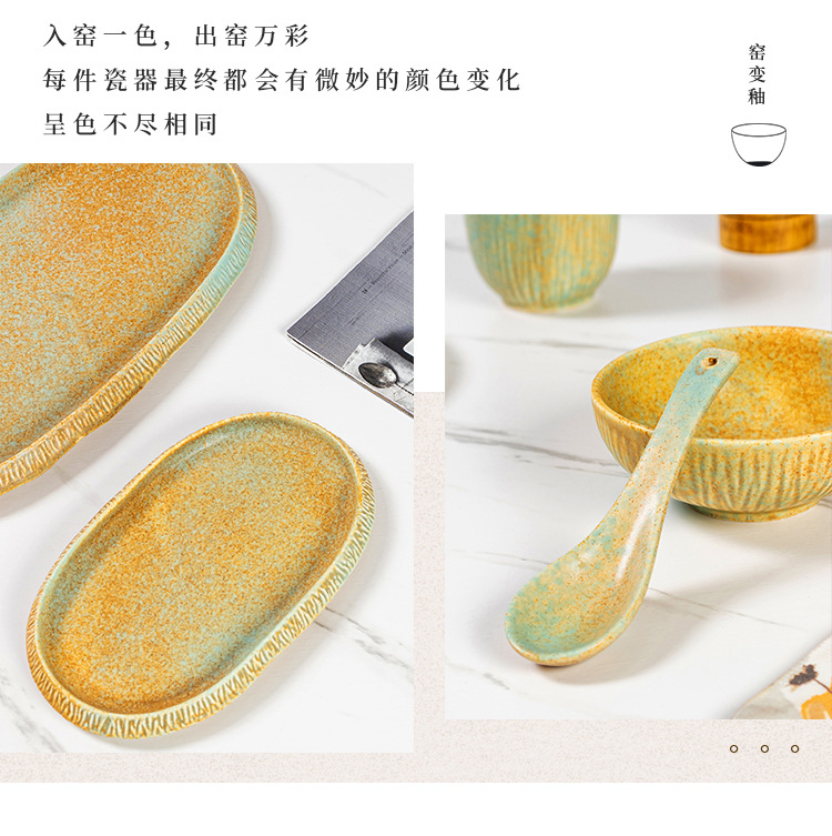 厂家批发哑光复古窑变陶瓷碗盘碟餐盘平盘寿司盘日式餐厅酒店餐具