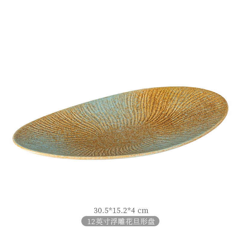 공장 도매 복고풍 일본 식기 무광택 가마 세라믹 그릇 판 평판 초밥 판 모양 판