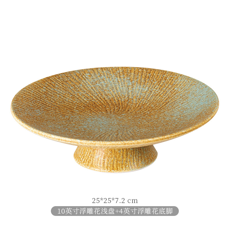 • 10인치 양각 꽃 얕은 접시 + 4인치 양각 꽃 베이스