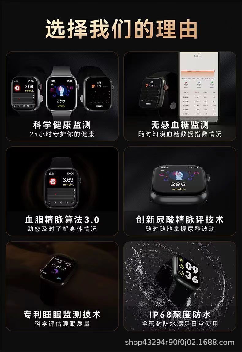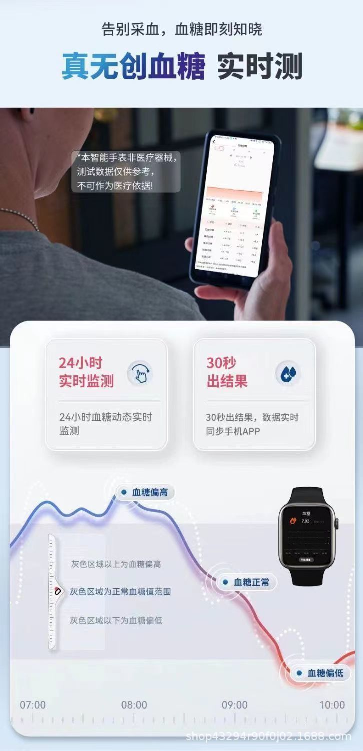 비 침습성 바늘없는 혈당 스마트 시계 심장 박동 혈압 우산 지방 혈액 산소 블루투스 통화 팔찌
