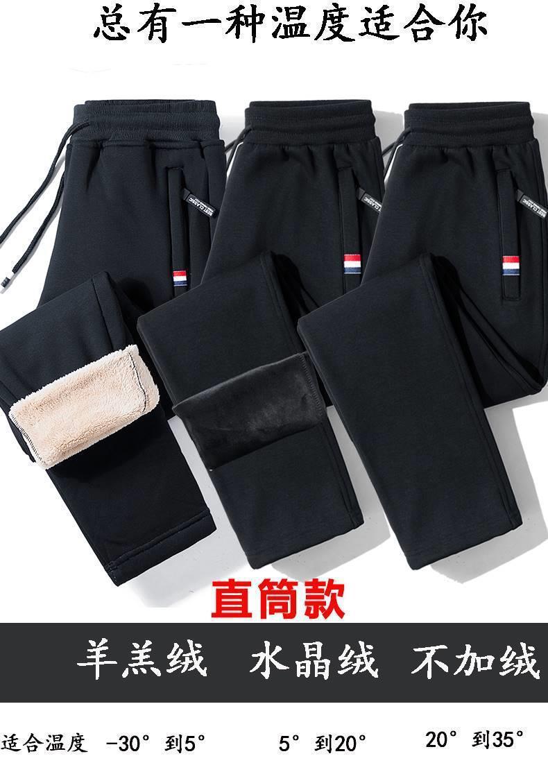 작업복 남성용 기모 두꺼운 기모 스포츠 바지 겨울 따뜻한 양고기 양털 느슨한 플러스 사이즈 스트레이트 캐주얼 바지