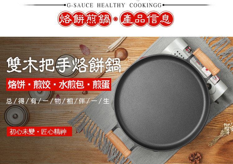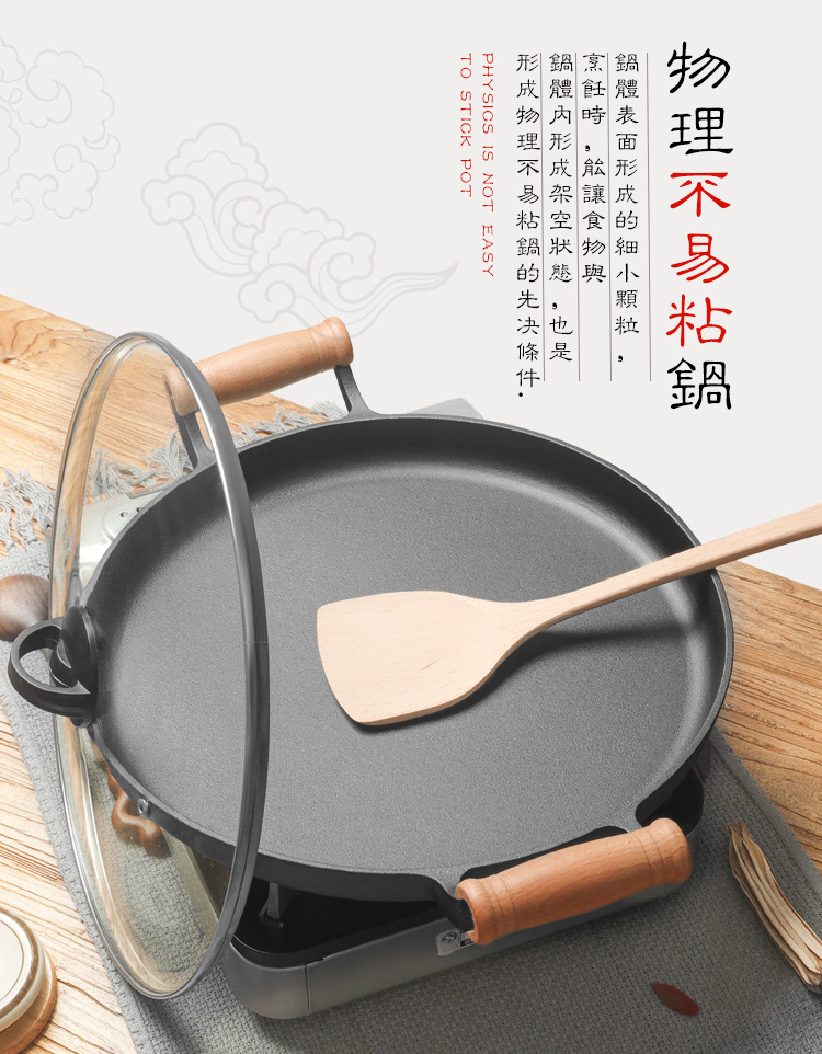 • 나무 손잡이 (33cm) 팬 프라이팬, 도구가 없는 단일 냄비