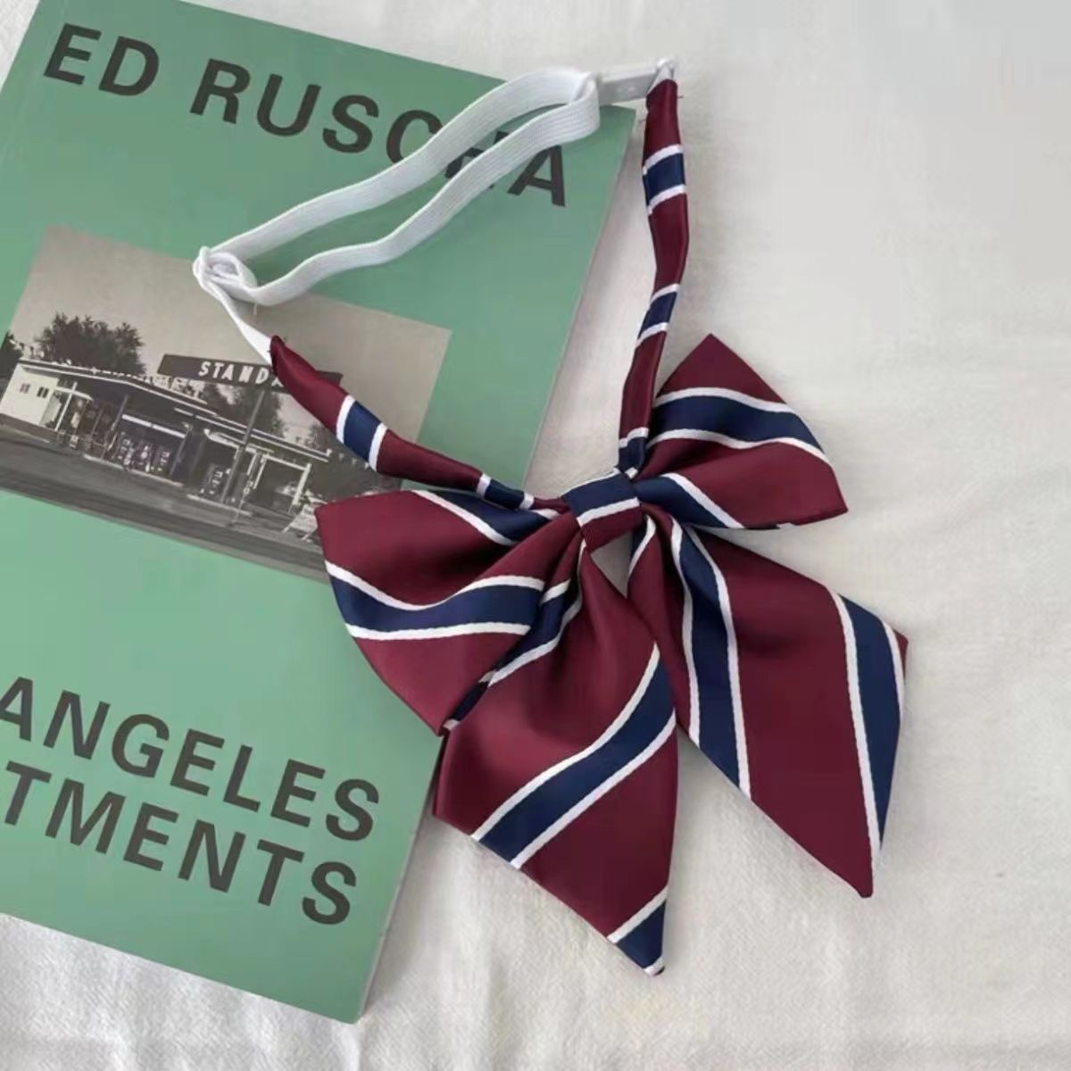 일본 JK 다크 버건디 블루 화이트 스트라이프 핸드 타이 대학 스타일 셔츠 액세서리 넥타이