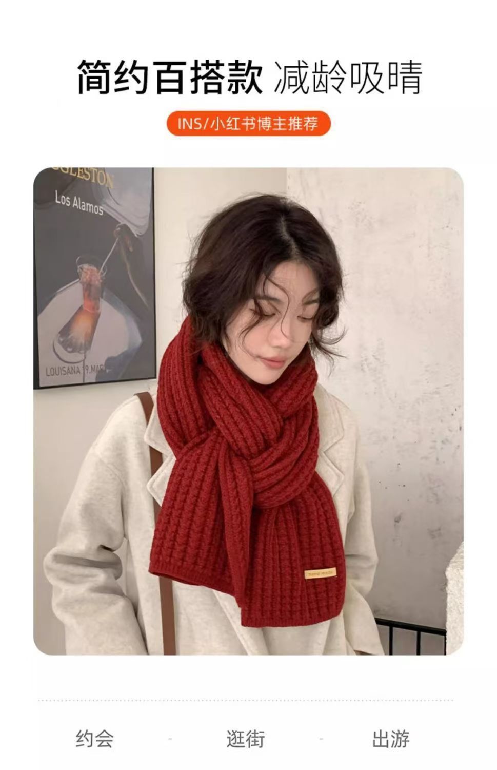 양모 니트 스카프 여성 가을 · 겨울 한국식 올매치 두꺼운 따뜻한 목도리 분위기 고급 학생 스카프 패션스토어 가기