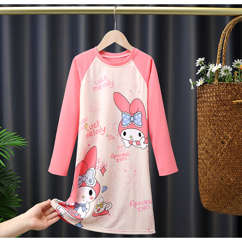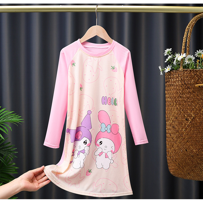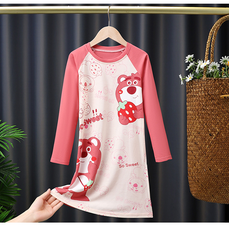 소녀의 잠옷 2024 새로운 어린이 면 긴 소매 잠옷 소녀의 가을 얇은 원피스스토어 가기