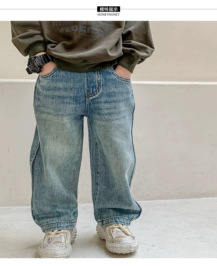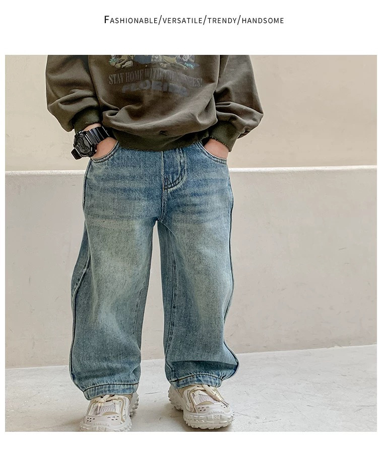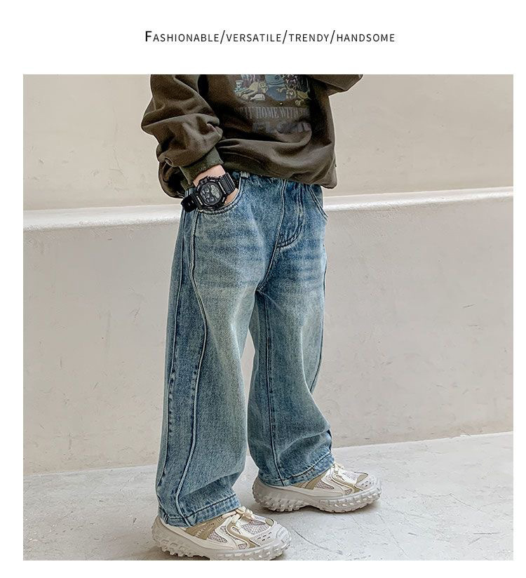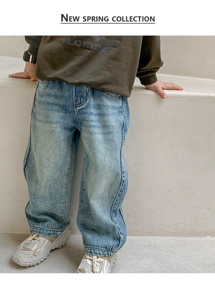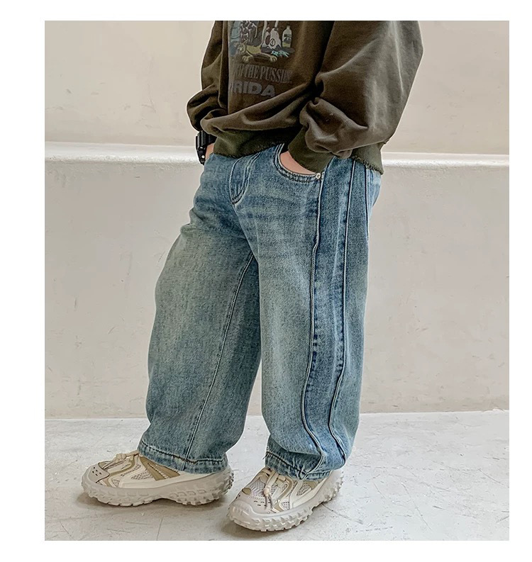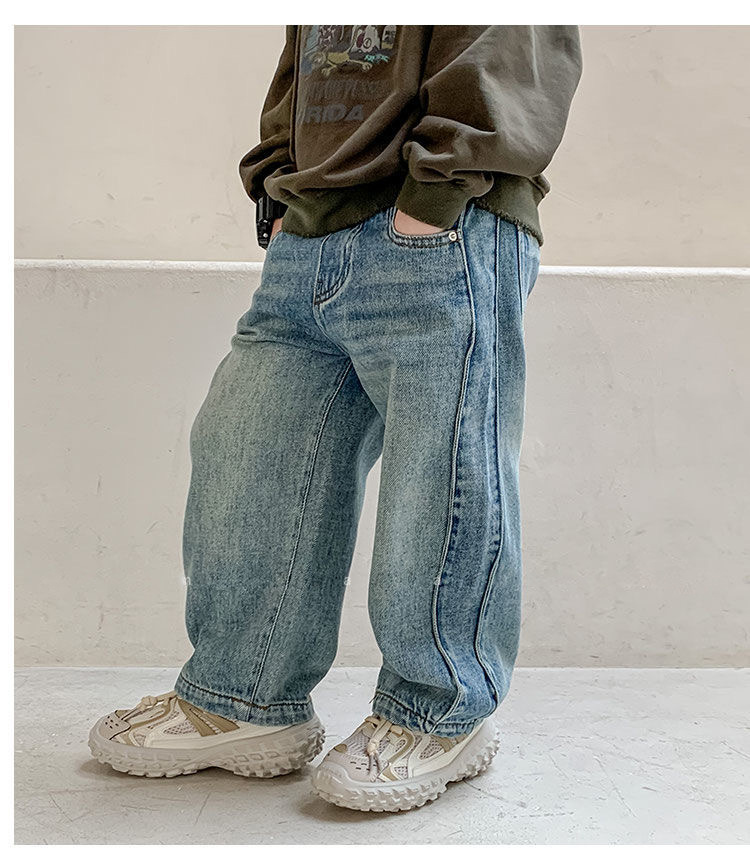 한국 남아 가을 아동복 바지 2026 신상 남자아이 스타일리시 청바지 아동 레트로 스트레이트 팬츠 트렌디스토어 가기