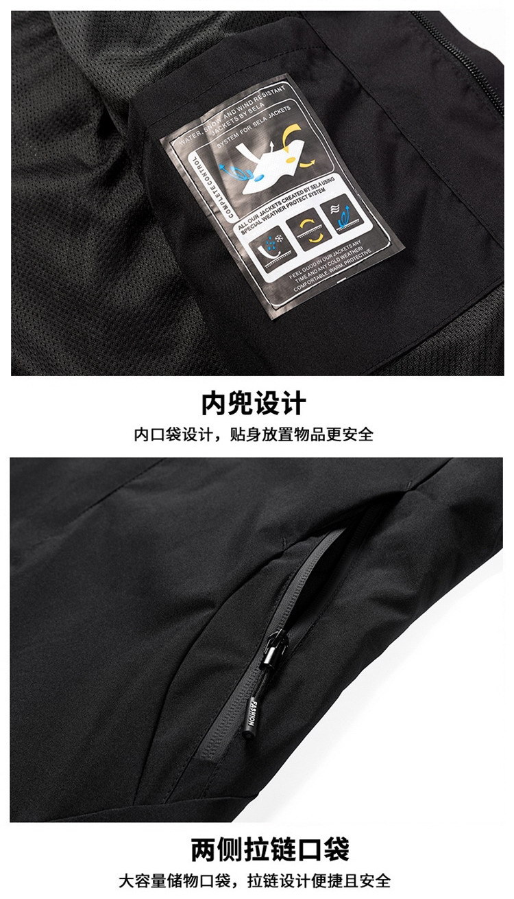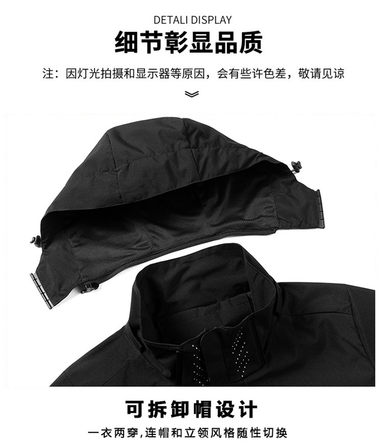 UARC 남성 야외 봄 및 가을 얇은 방수 방풍 분리 캡 캐주얼 스포츠 등산 세트 재킷 코트
