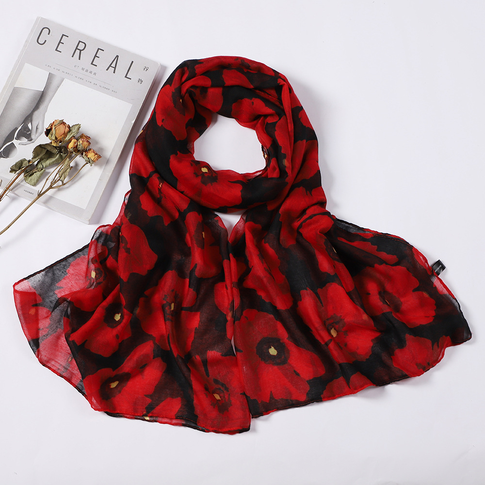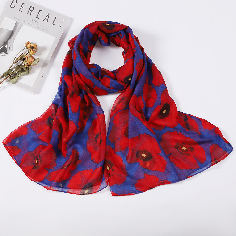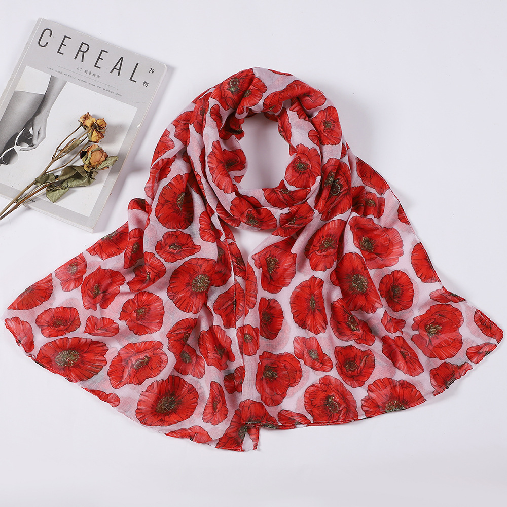 국경을 넘나드는 유럽과 미국의 복고풍 스카프, 실크 스카프, 양귀비 꽃무늬 클래식 보일 스카프, 여행용 숄