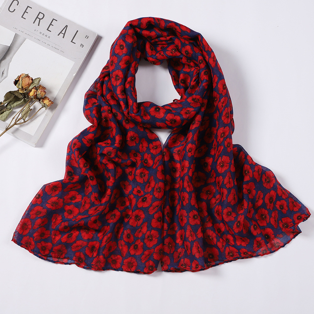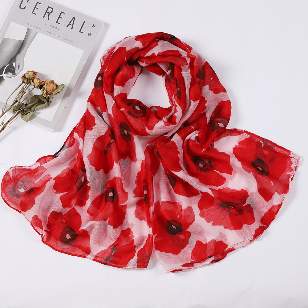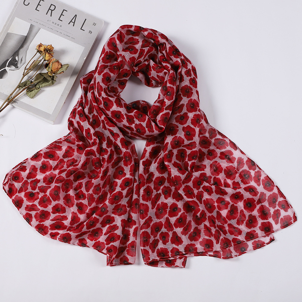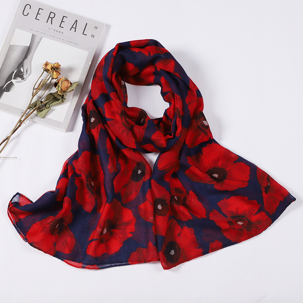 국경을 넘나드는 유럽과 미국의 복고풍 스카프, 실크 스카프, 양귀비 꽃무늬 클래식 보일 스카프, 여행용 숄