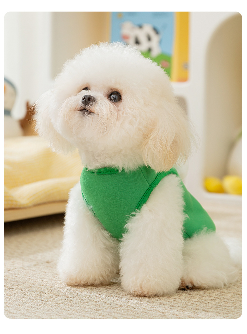녹색 단색 큰 눈 귀여운 영어 트랙션 스웨터 두 다리 민소매 작은 개 고양이 애완견 개 옷 도매