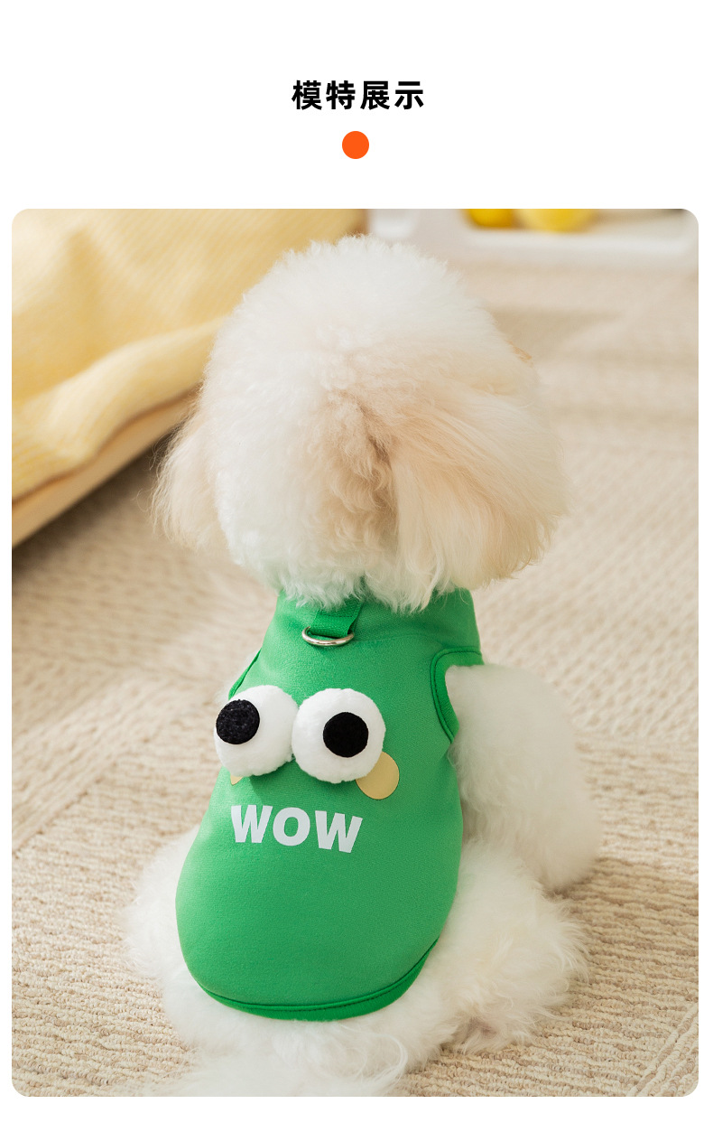 녹색 단색 큰 눈 귀여운 영어 트랙션 스웨터 두 다리 민소매 작은 개 고양이 애완견 개 옷 도매스토어 가기