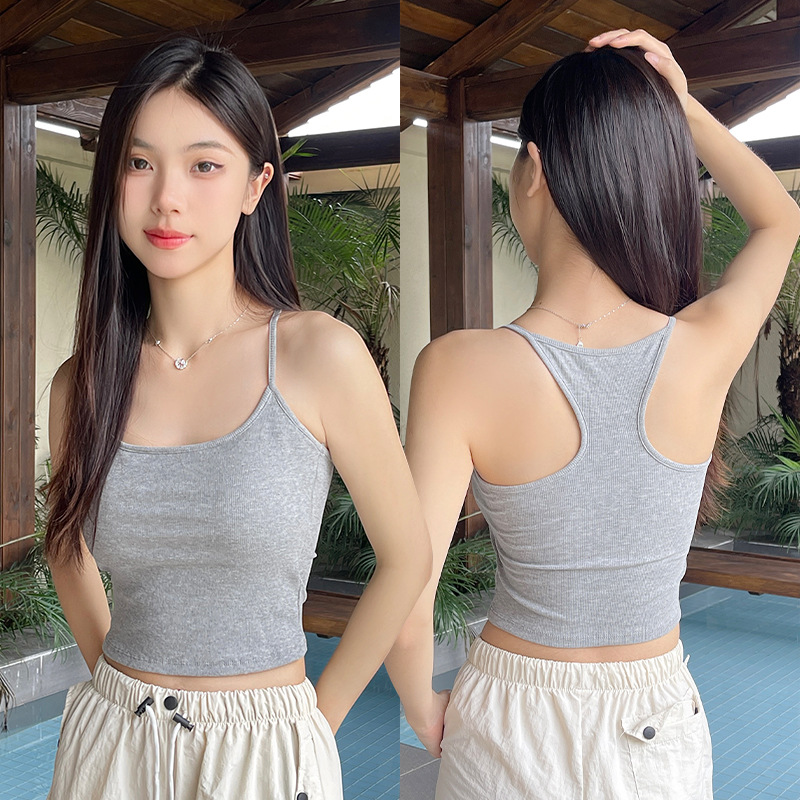 핫걸 다재다능한 RC 코튼 I자형 뷰티백 캐미솔 여성용 가슴 패드 포함, 내부 및 외부 착용 슬리밍 탑스토어 가기