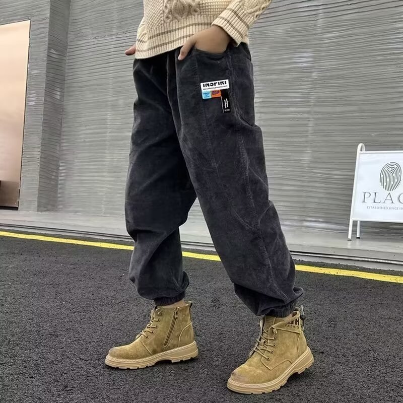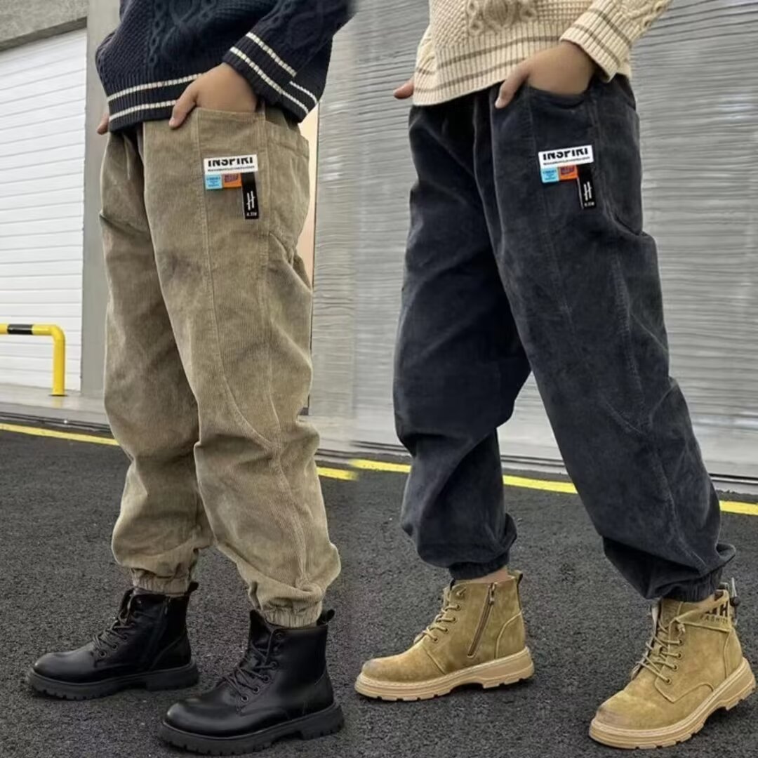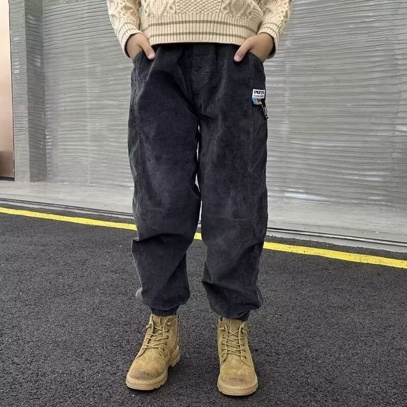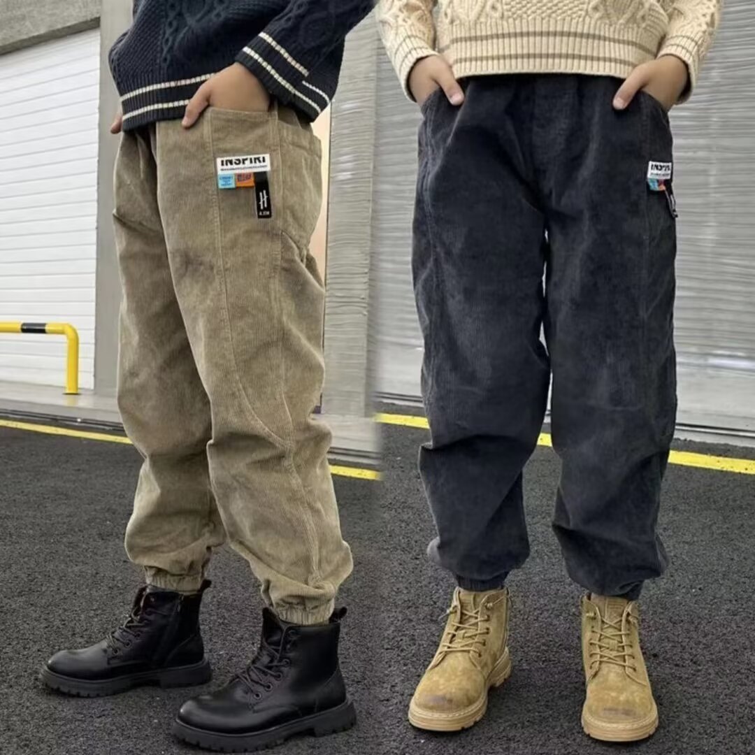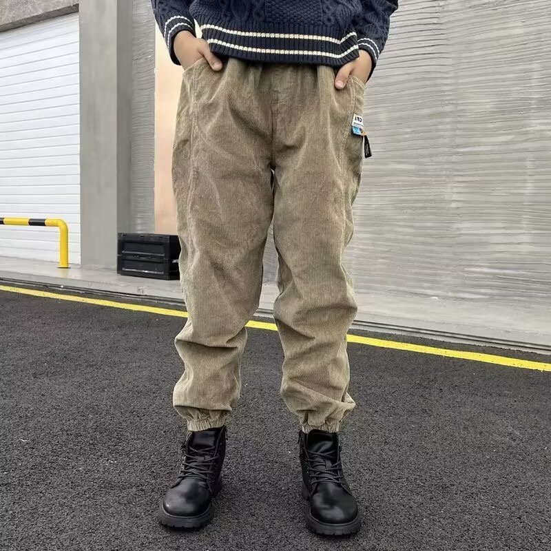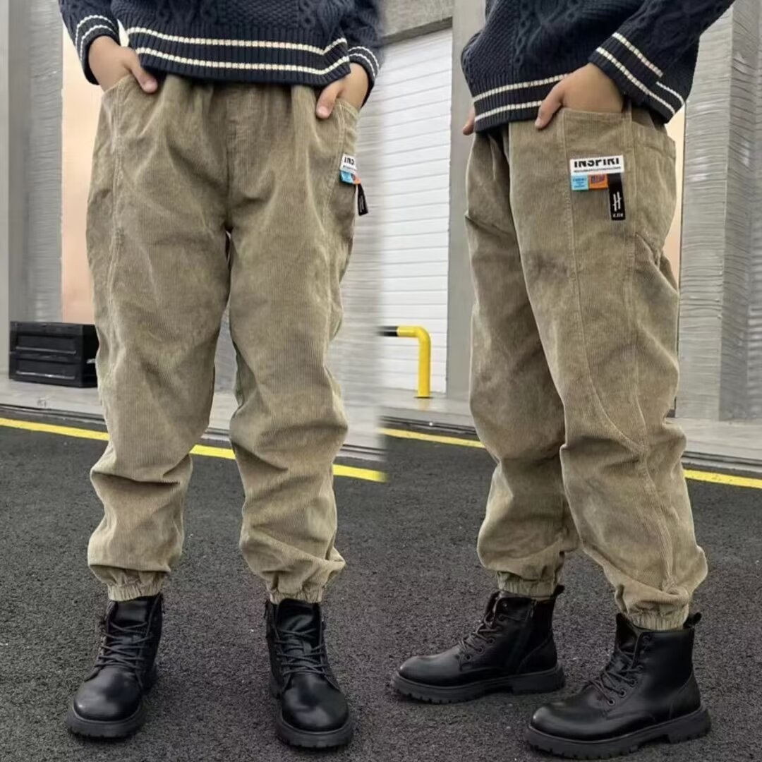 소년 코듀로이 바지 봄과 가을 2024 새로운 대형 어린이 느슨한 캐주얼 바지 어린이 잘 생긴 벨벳 바지스토어 가기
