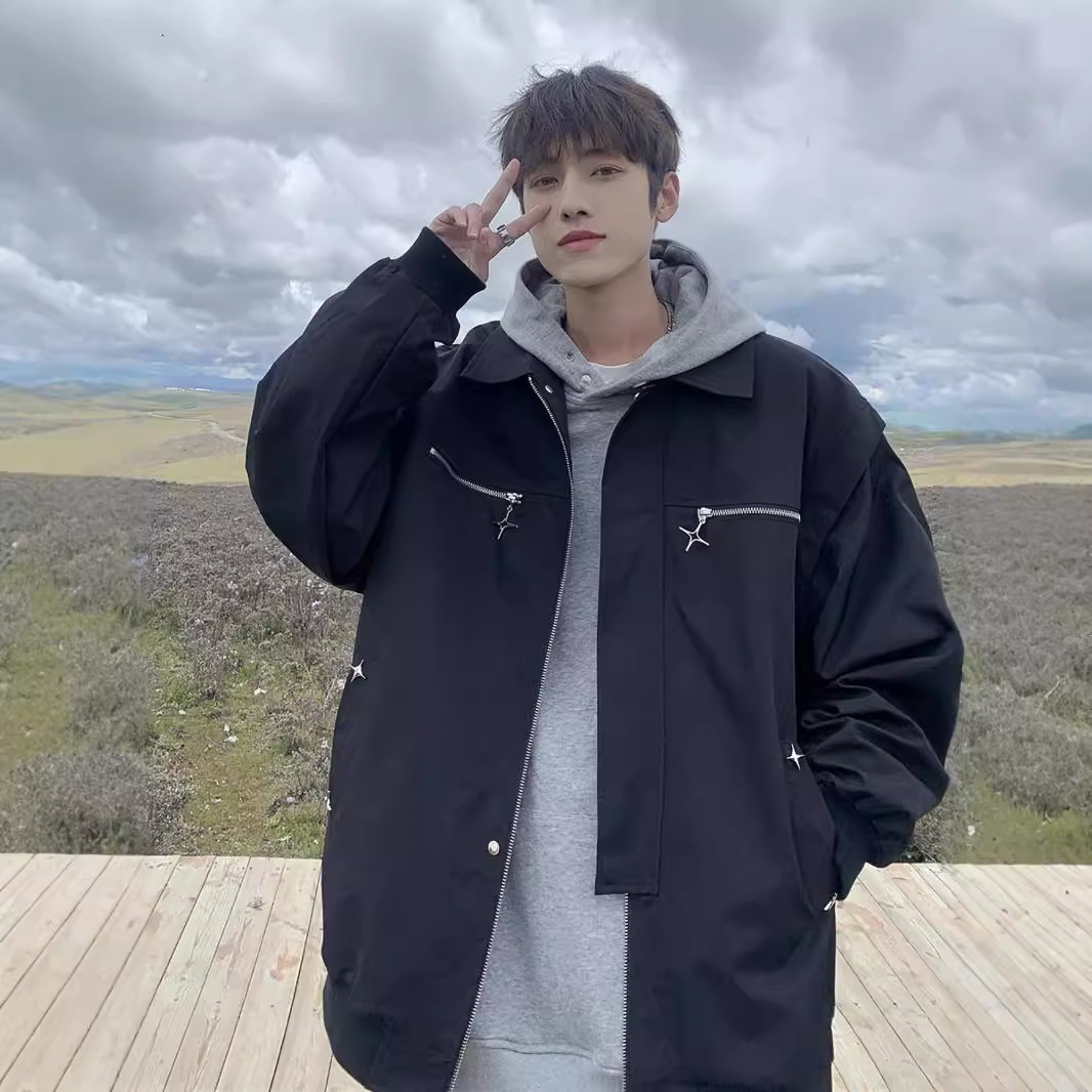 재킷 남자의 2024 새로운 봄과 가을 옷깃 캐주얼 자켓 느슨한 모든 경기 통통한 잘생긴 소년 디자인 센스 탑 옷스토어 가기