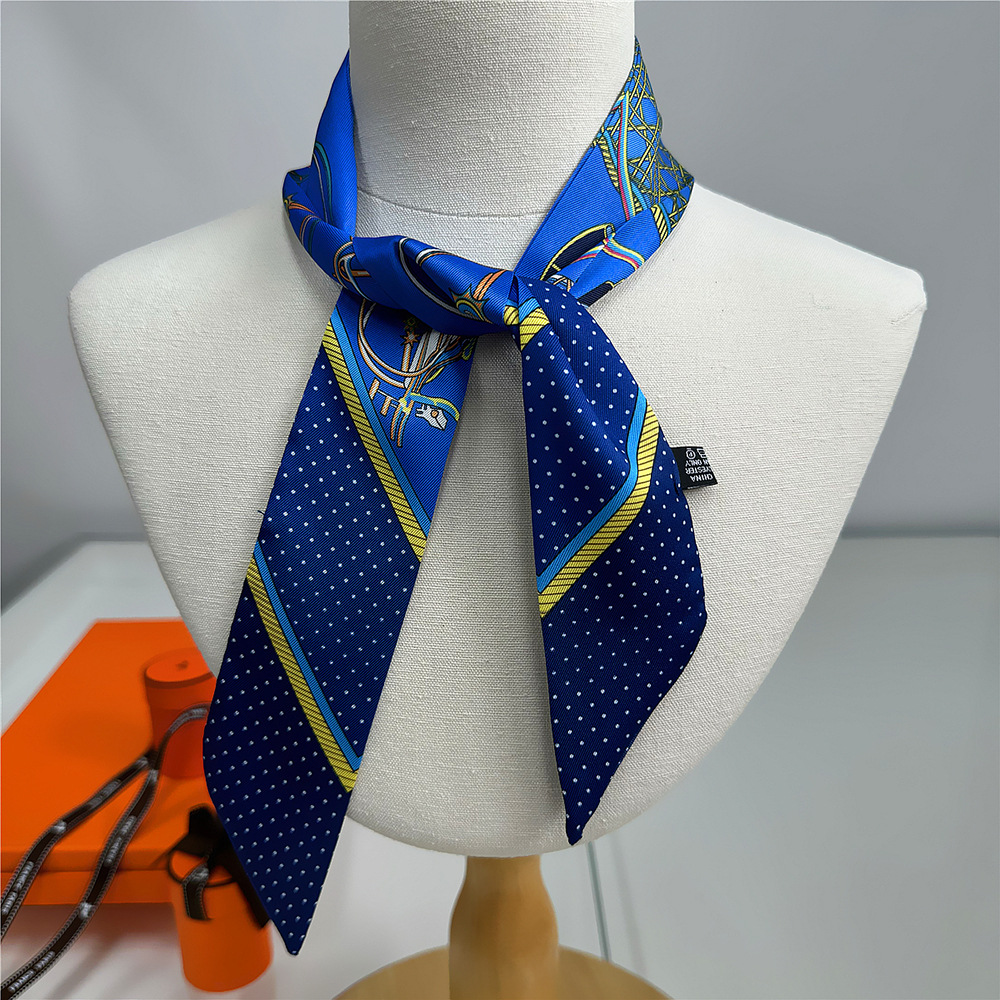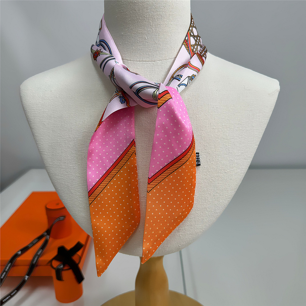 한국 가을 새 도트 호박 마차 여성 티 실크 리본 타이 백 리본 스카프 작은 스카프