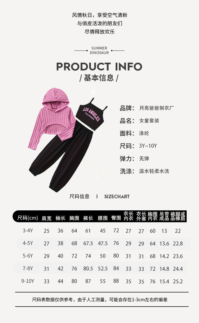 스트랩 탑 바지가 달린 대외 무역 소녀 캐주얼 후드 니트 핑크 스웨터 어린이 가을 3 종 세트스토어 가기
