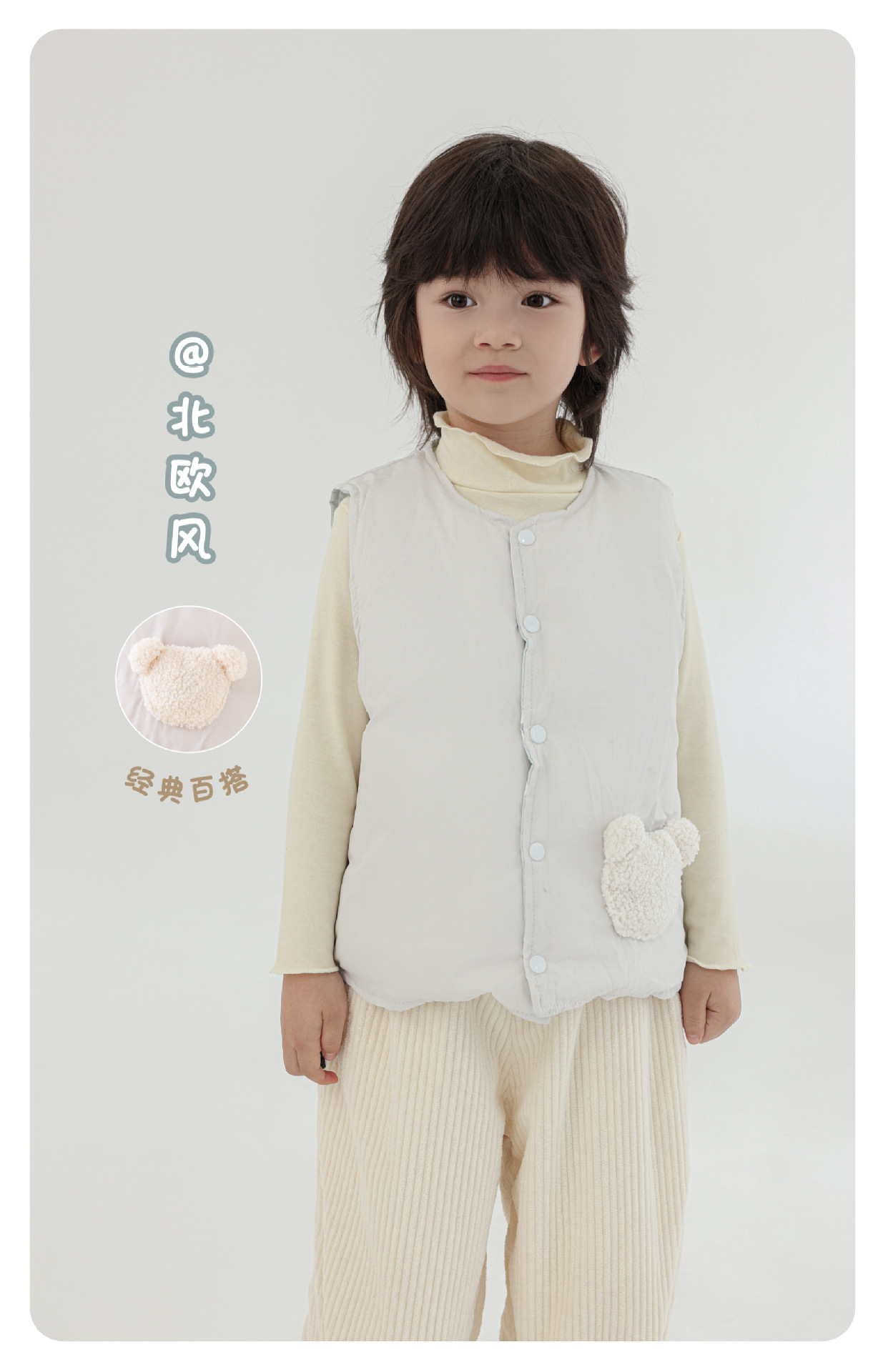 겨울 24 소년 소녀 어린이를위한 새로운 북유럽 스타일 어린이 다운 조끼 냉간 따뜻한 양면 조끼