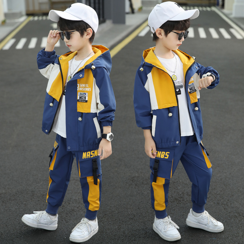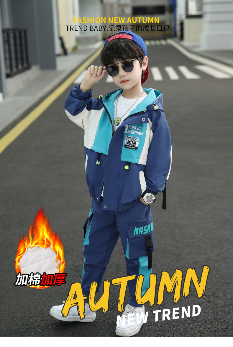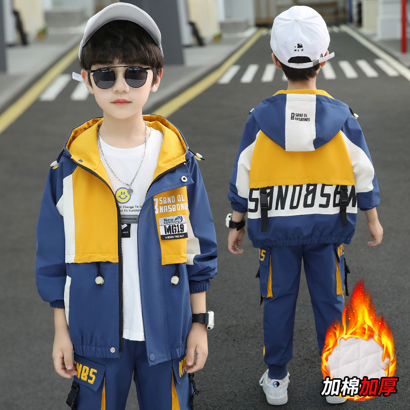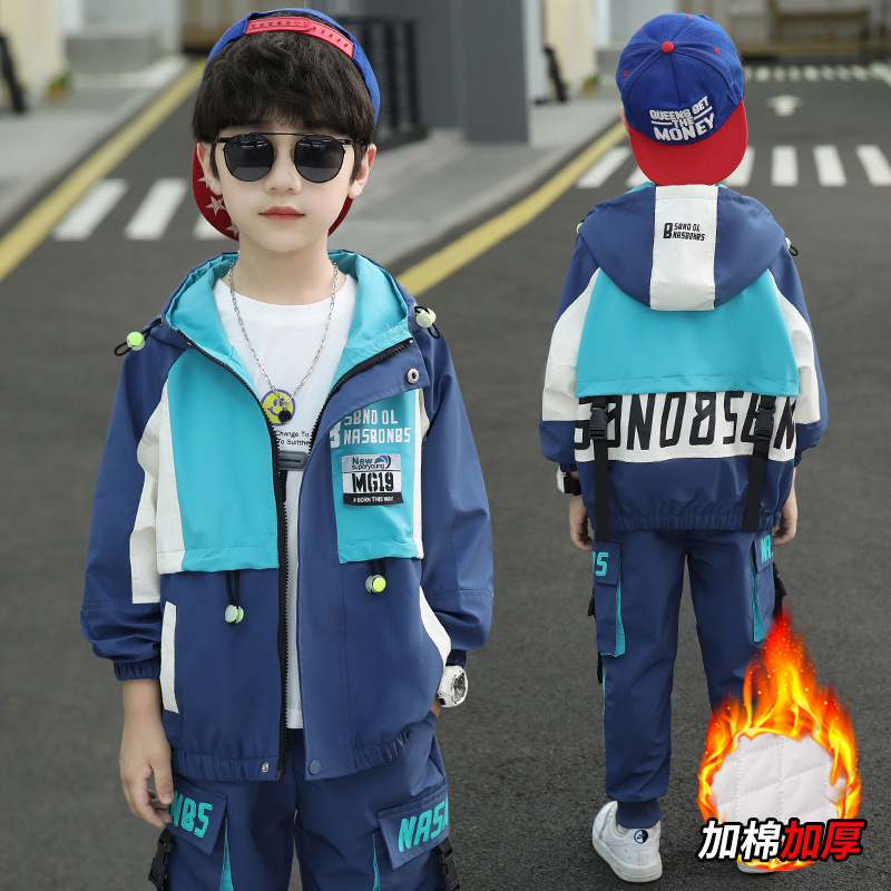 소년 가을 스포츠 정장 2025 새로운 스타일 중대형 어린이 봄, 가을 잘 생긴 소년 겨울 의류 두꺼운 투피스 세트 유행스토어 가기