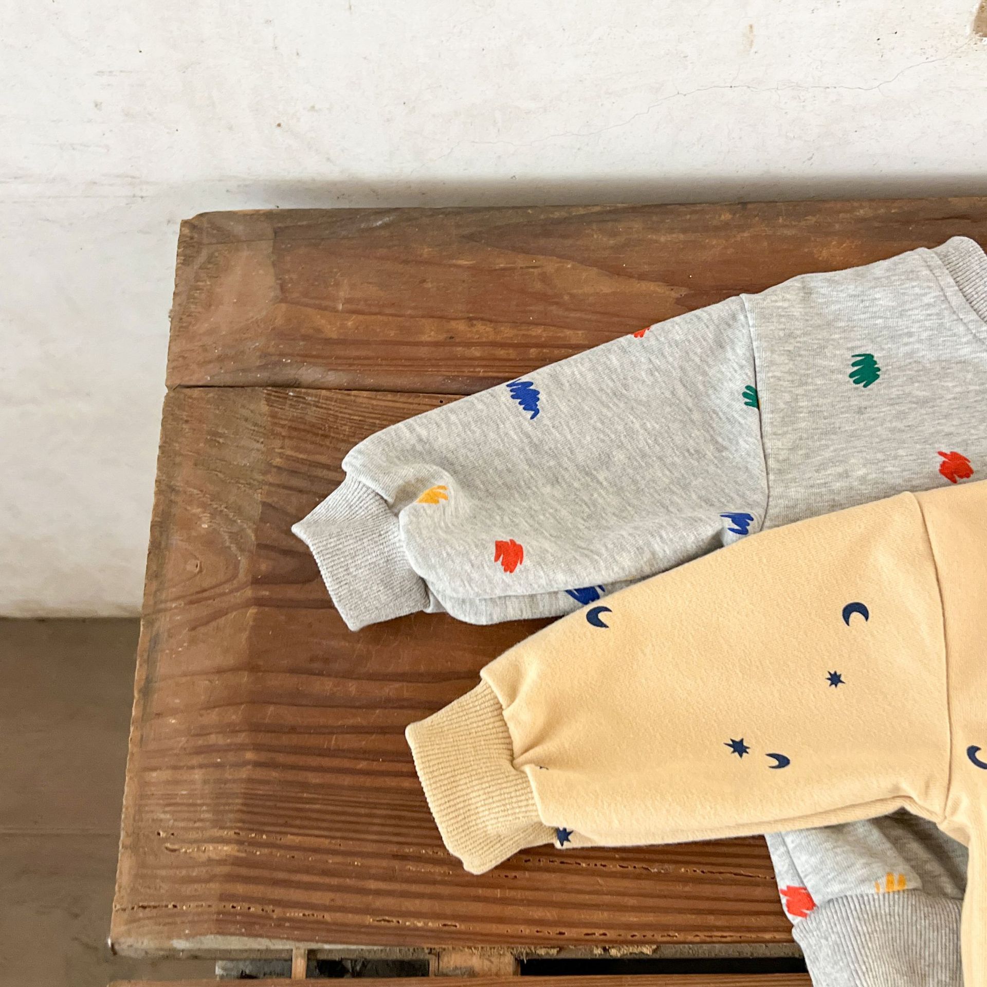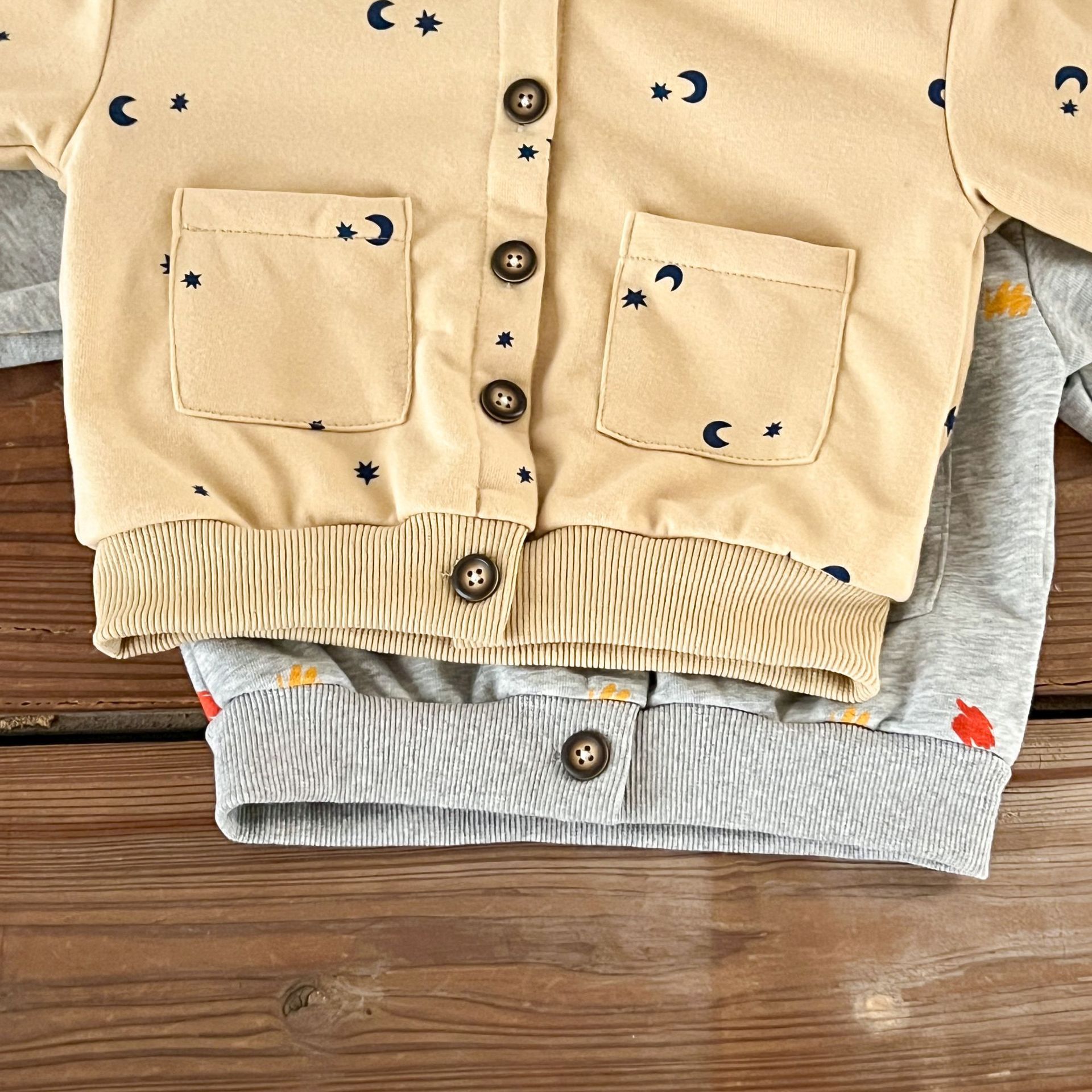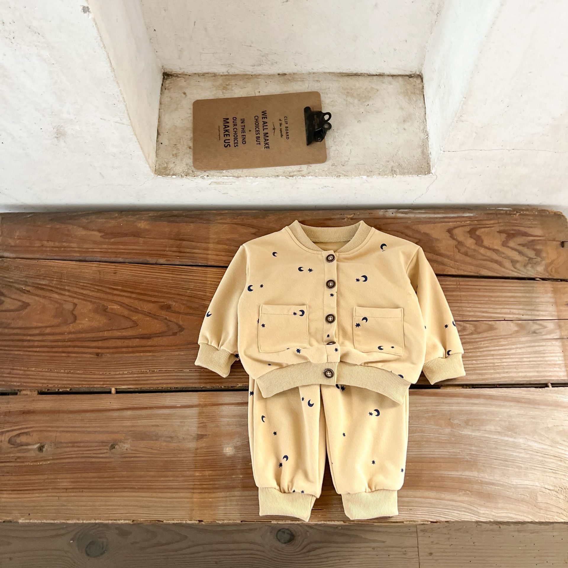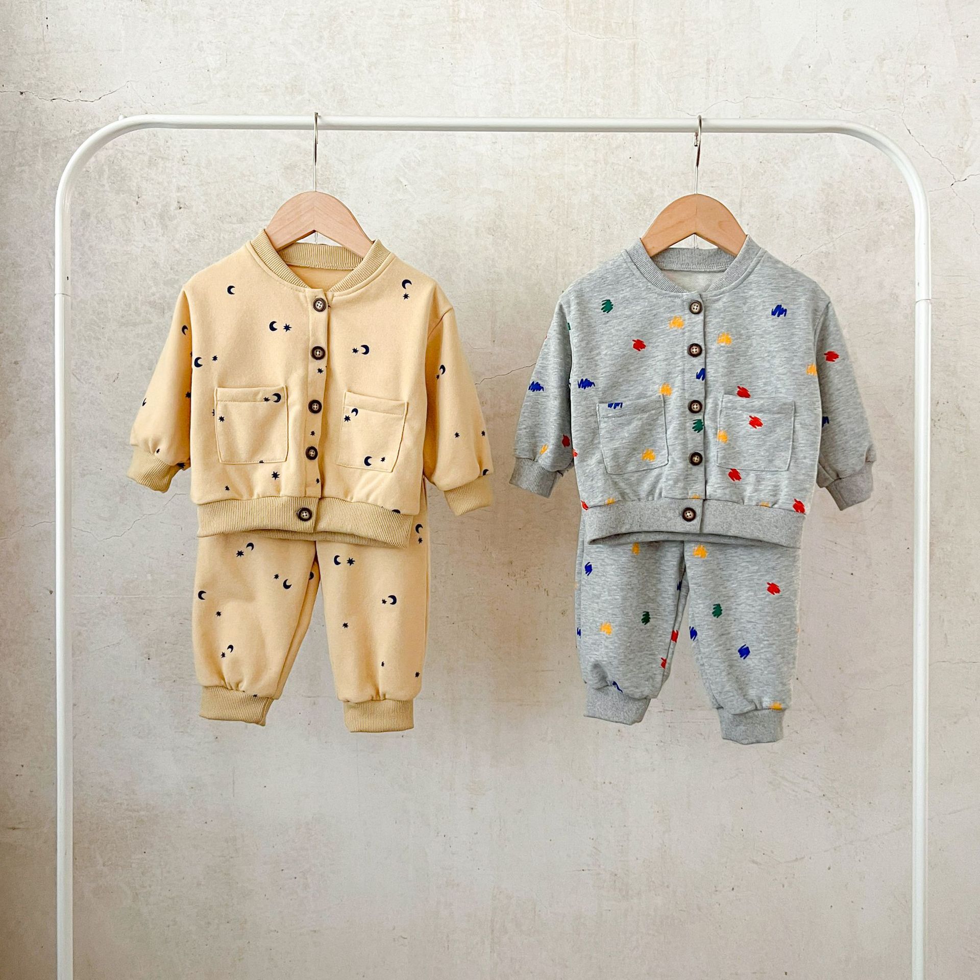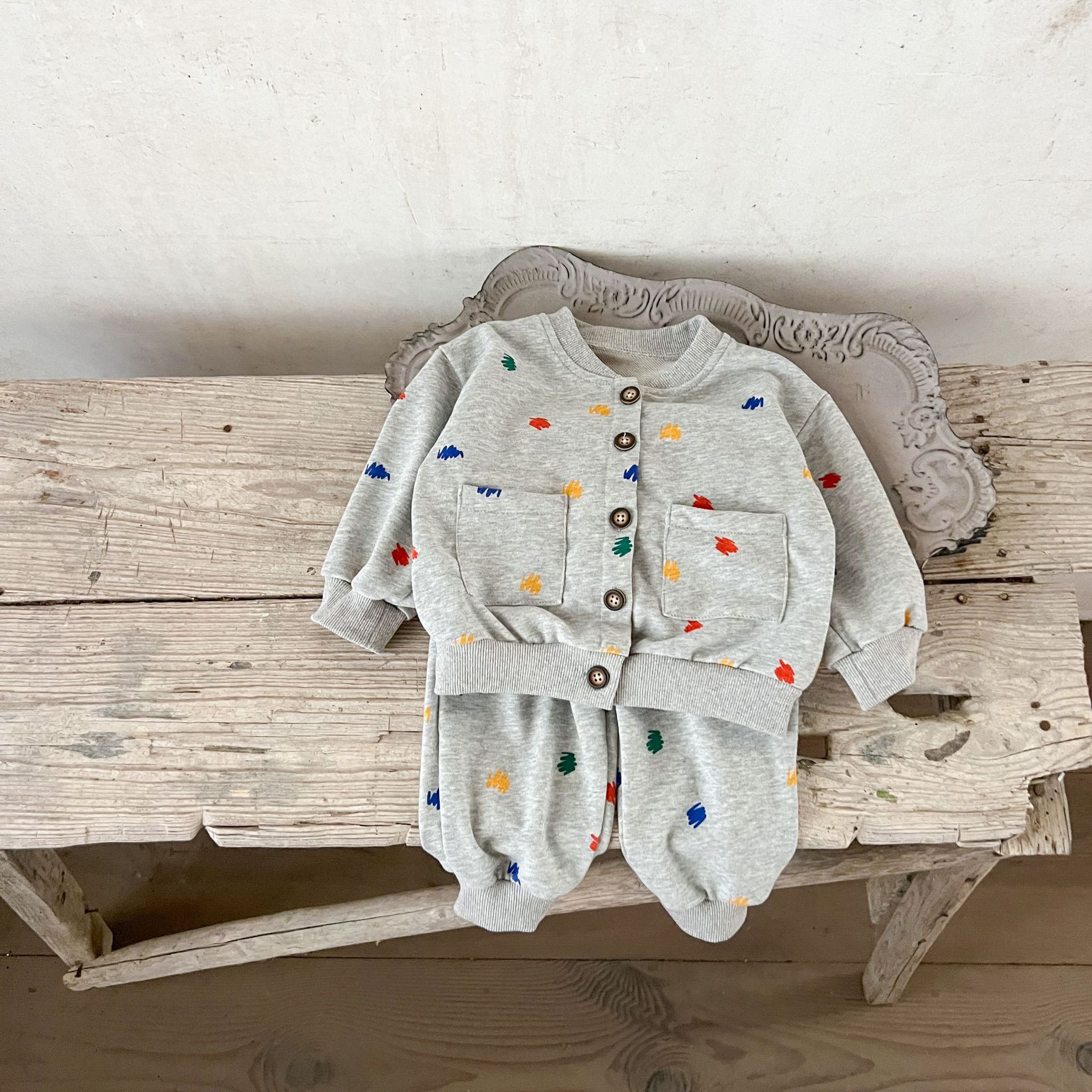 봄과 가을 소년과 소녀 유럽과 미국 스타일의 카디건 재킷 느슨한 바지 세트 유아 만화 인쇄 세트스토어 가기
