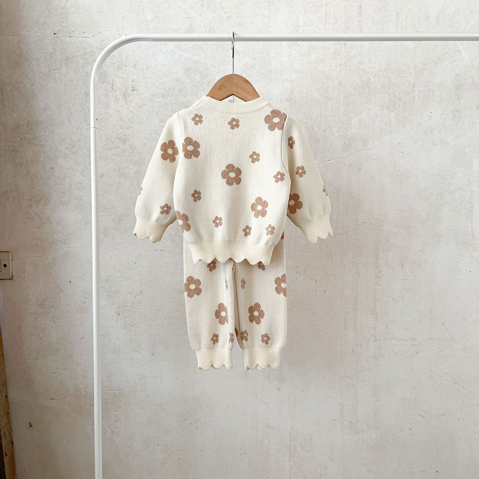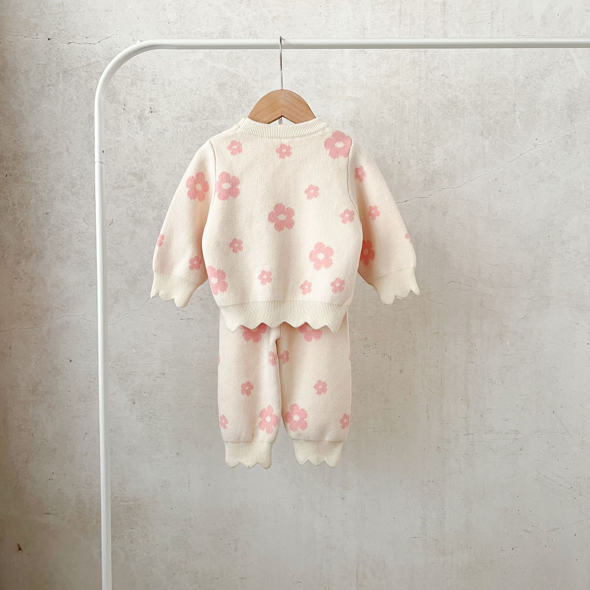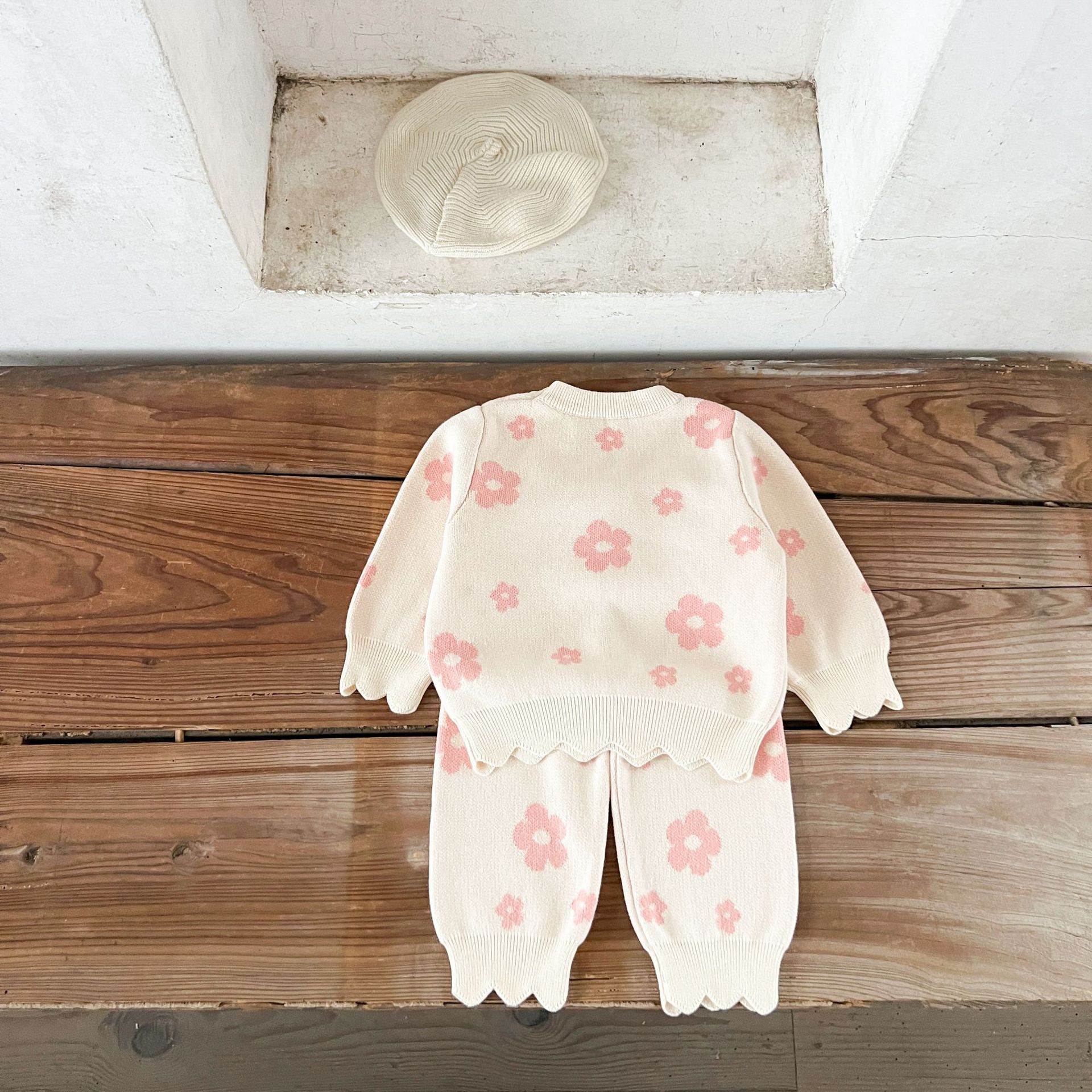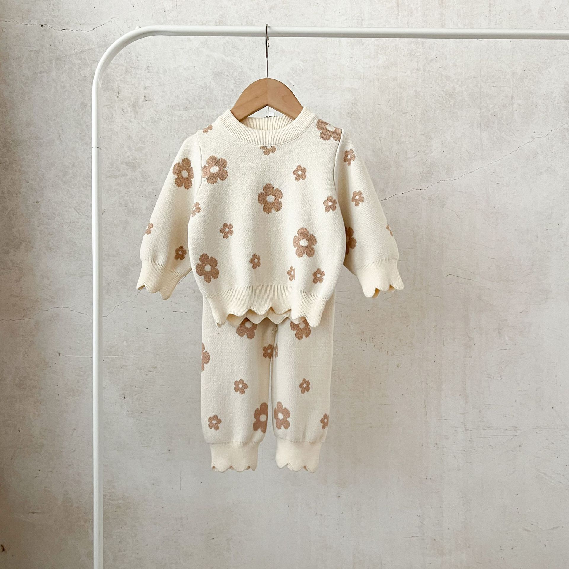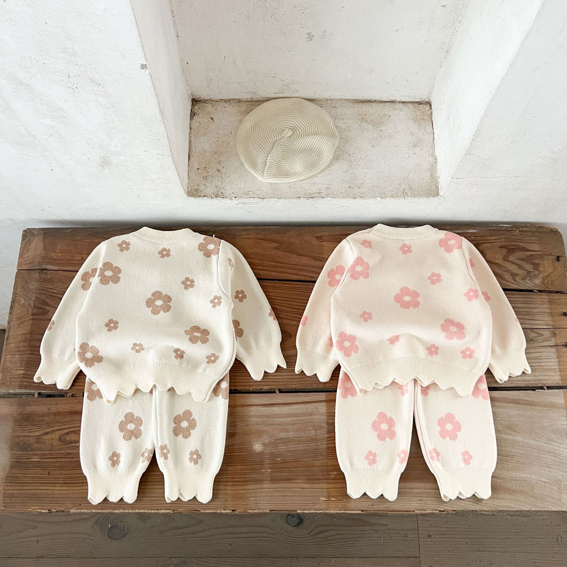 Ins 한국식 소녀 아기면 꽃 양모 세트 느슨한 스웨터 탑 느슨한 바지스토어 가기