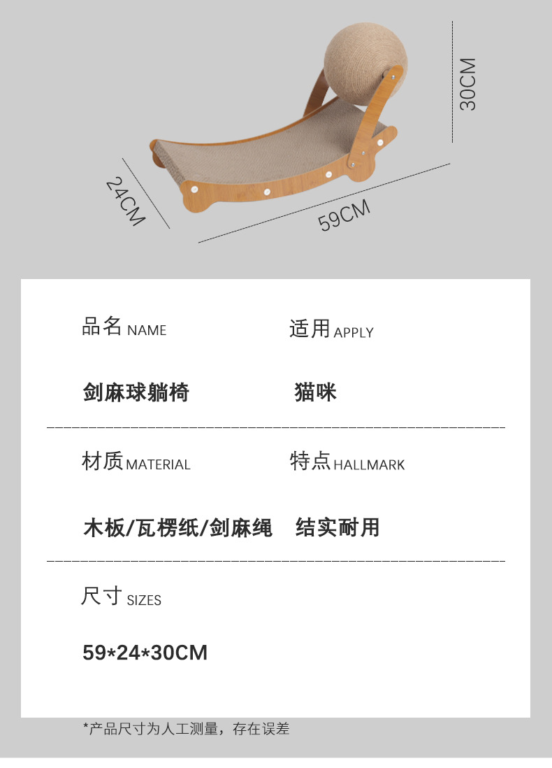 고양이 장난감용 볼이 달린 라운지 소파, 고양이 발톱판 일체형, 내마모성, 깨지지 않는 마끈볼, 고양이 발톱판, 고양이 장난감 용품 도매