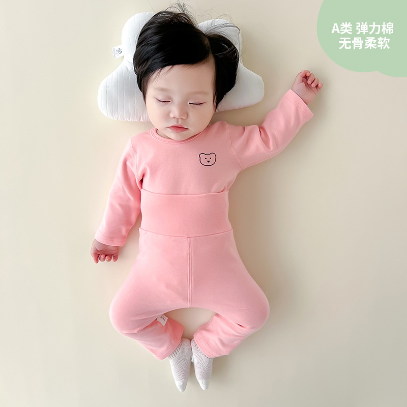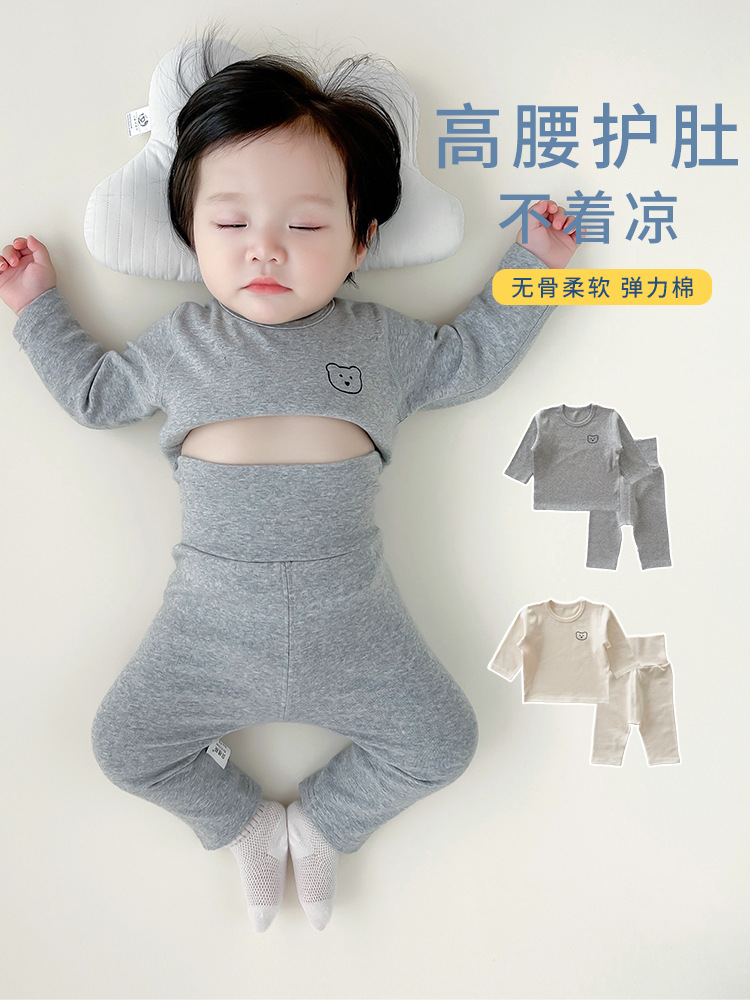 아기 옷 가을 잠옷 반 감기 1 세 아기 가을 옷 세트 면 카테고리 분할 높은 허리 배꼽 바지스토어 가기