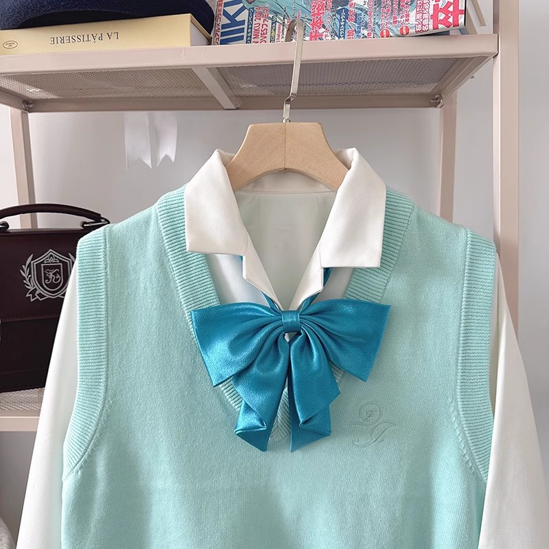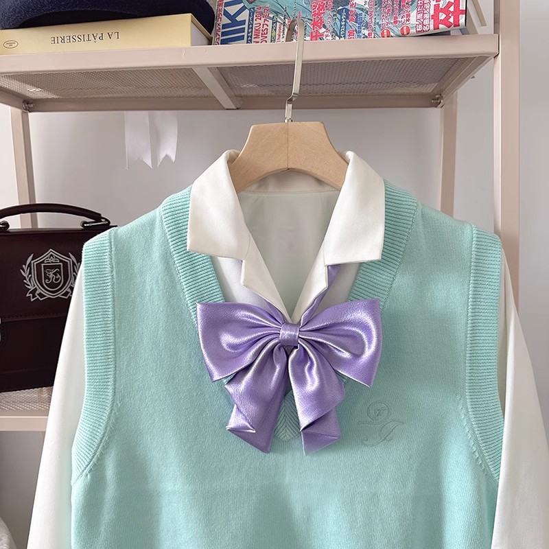 류킨 짧은 꼬리 Swallowtail 나비 긴 손잡이 넥타이 컬러 활이없는 여성용 JK 유니폼 선원 세트 셔츠 귀여운