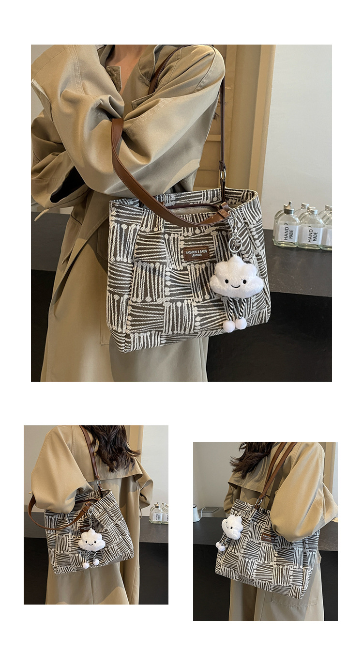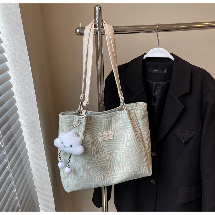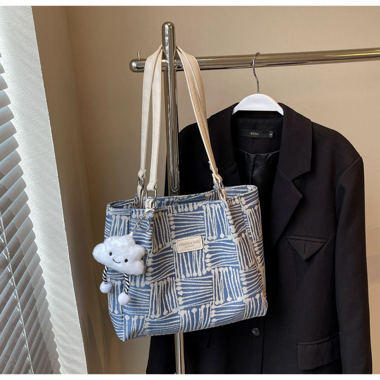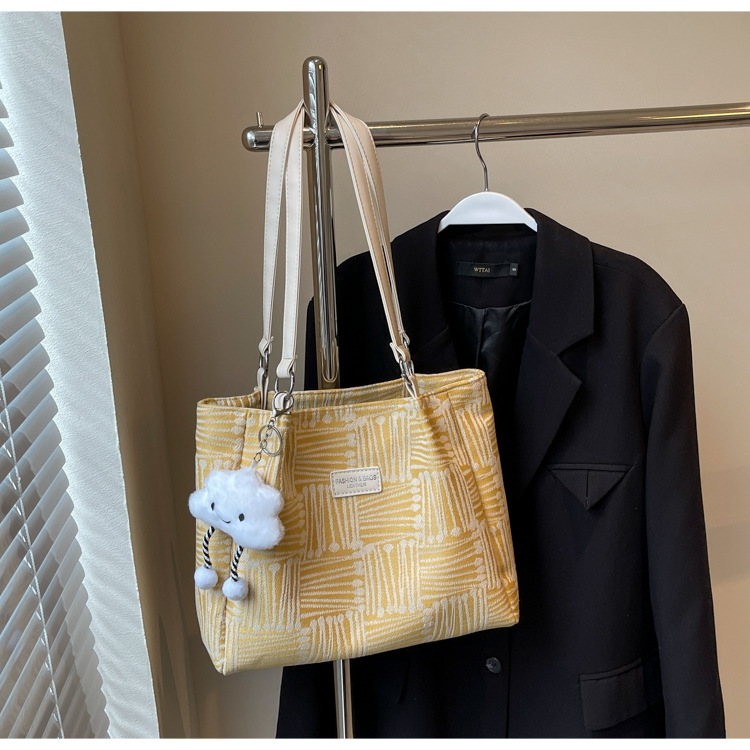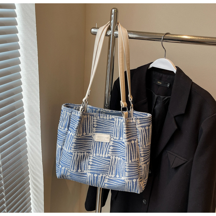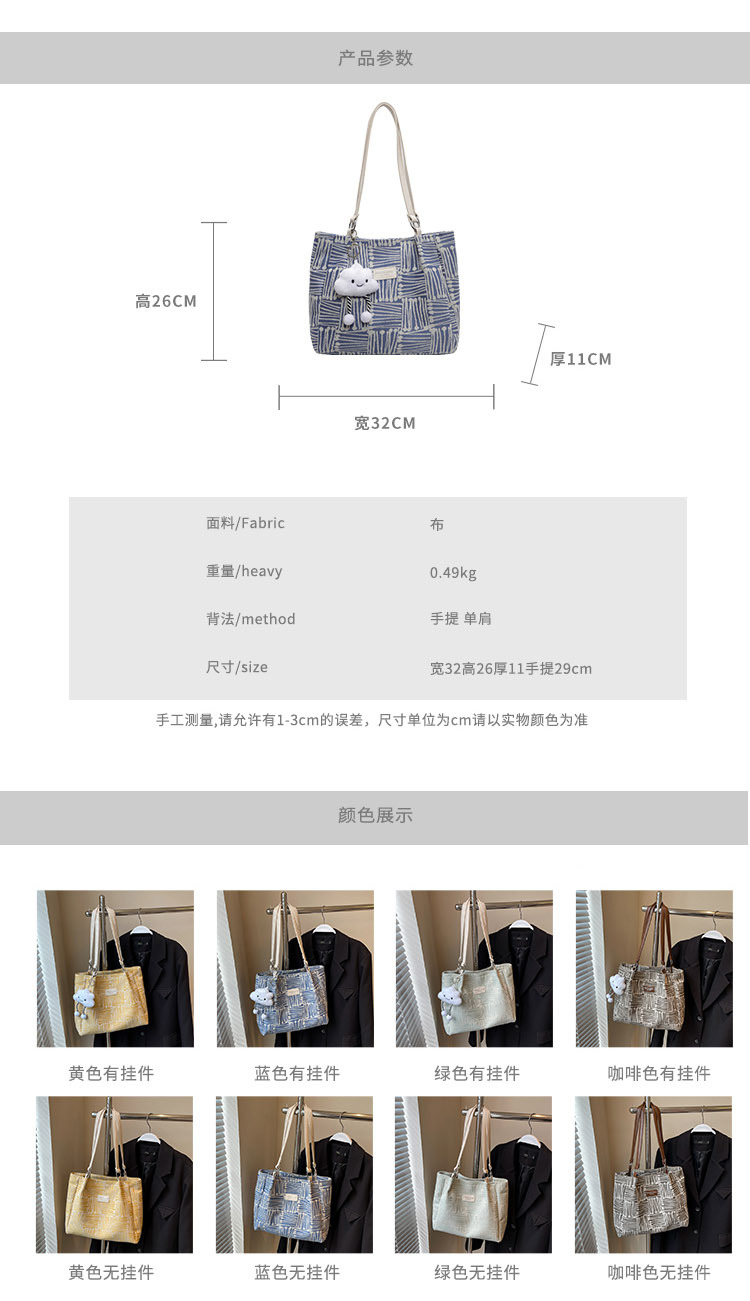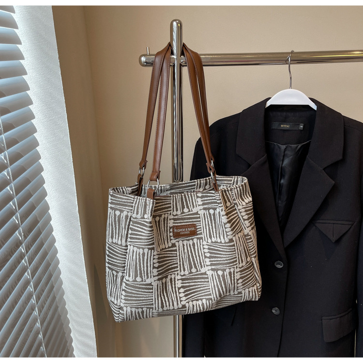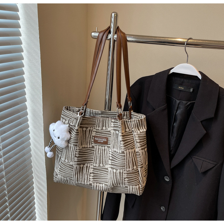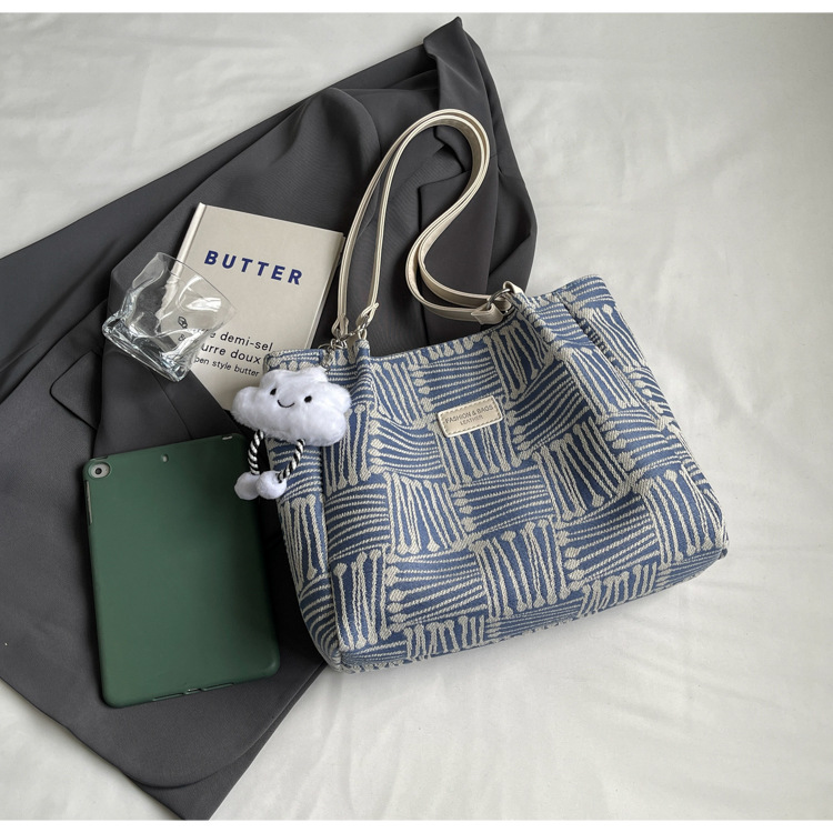 한국 패션 줄무늬 가방 여성 가방 2024 새 겨드랑이 가방 캐주얼 캔버스 올매치 우아한 어깨 가방
