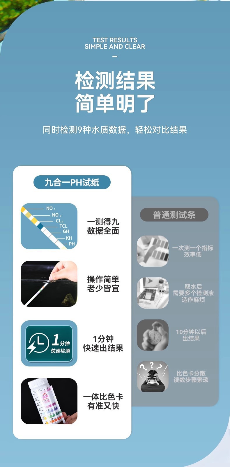 예 물고기 탱크 수질 테스트 종이 아질산염 부드럽고 단단한 물 9 대 1 빠른 PH 미터 pH 교차 경계스토어 가기