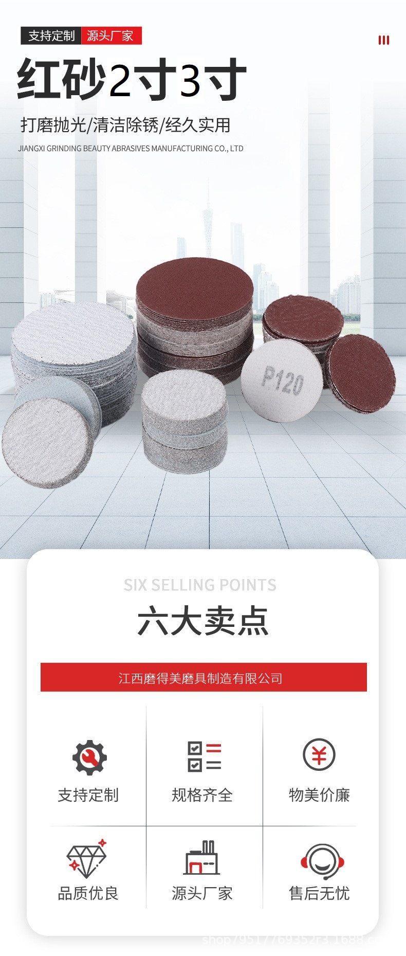 빨간색 모래 흰색 모래 2inch 3inch 디스크 벨벳 사포 수제 목공 연마 자체 접착 브러시 시트 건식 샌딩 사포스토어 가기