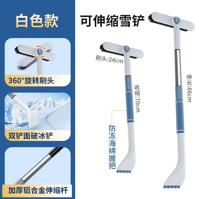 • 다기능 눈 브러시 텔레스코픽 눈 브러시 - 흰색 [눈 청소/서리 긁기/얼음 제거]
