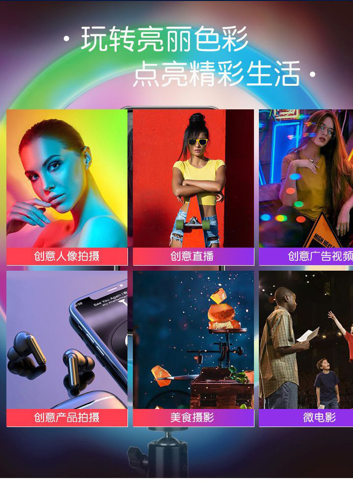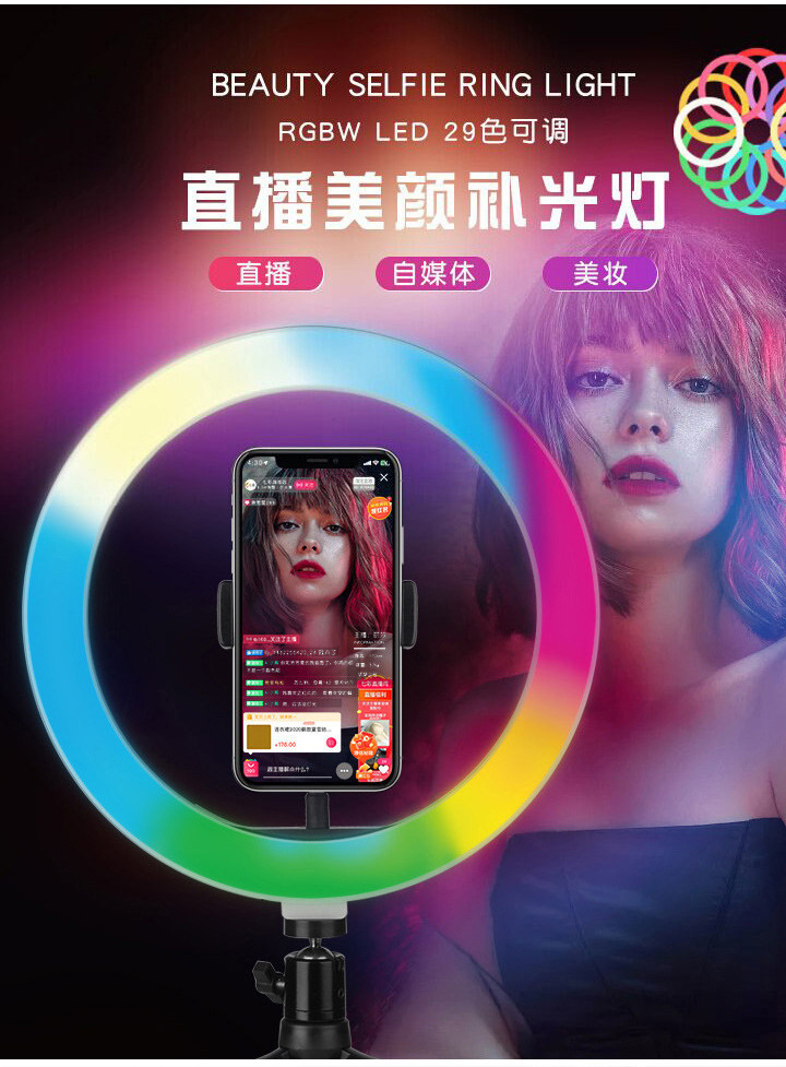 10인치 12RGB 삼색 도매 사진 촬영 뷰티 링 라이트 셀카 비디오 라이브 방송 사진 조명 보조광스토어 가기