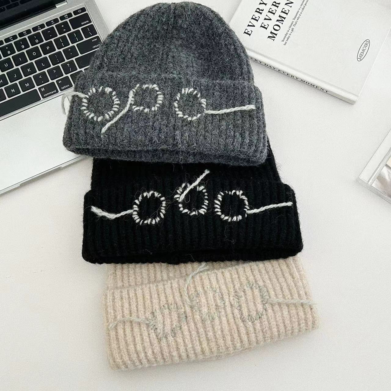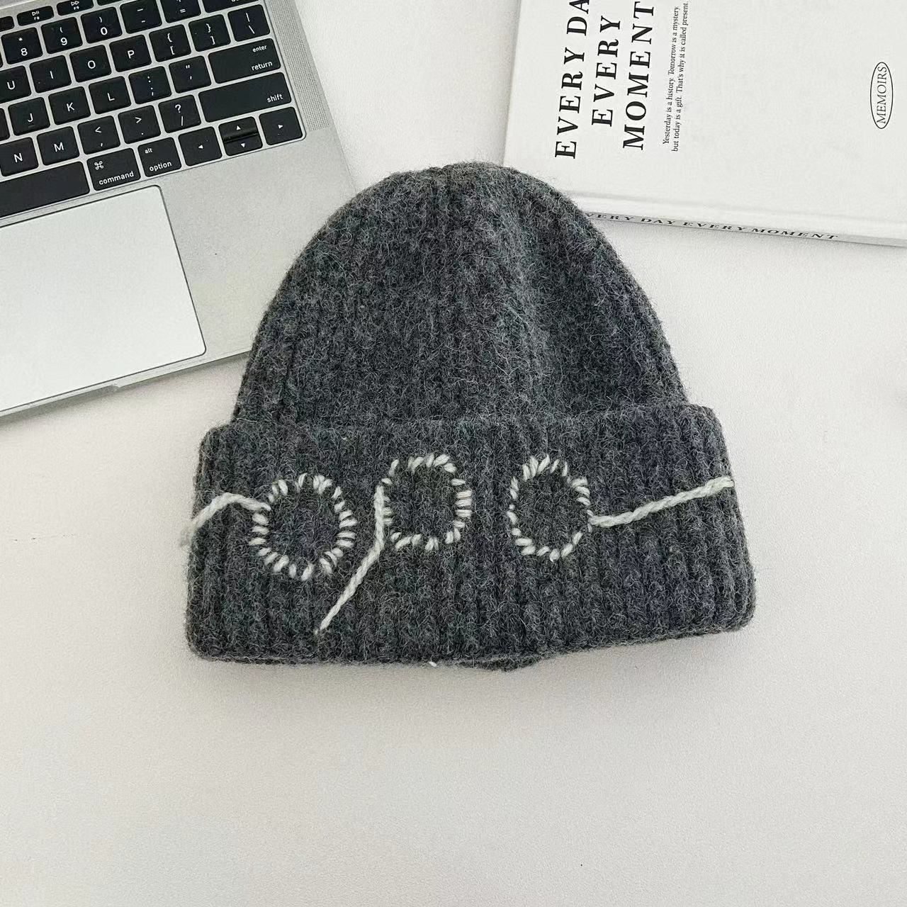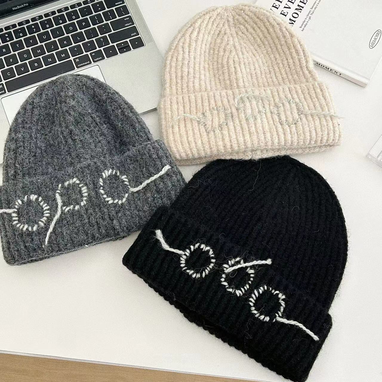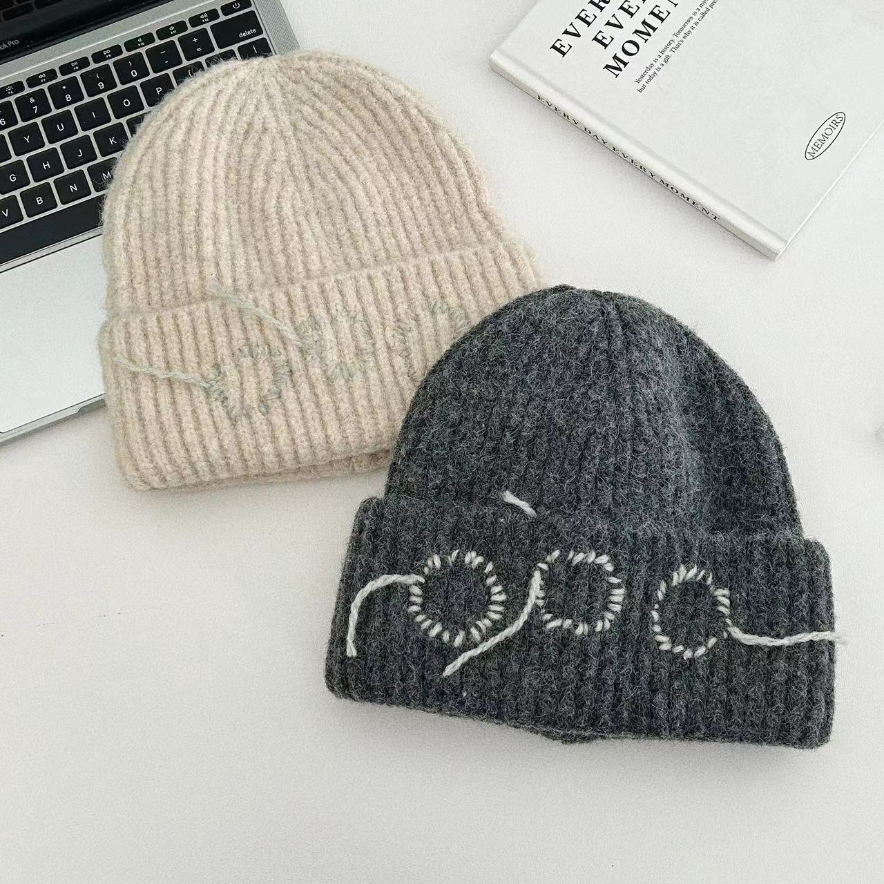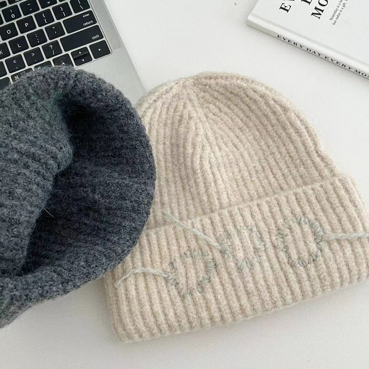 24 가을과 겨울 손으로 꿰매어 따뜻한 두꺼운 니트 모자 Baotou 귀 보호 냉동 양모 모자 남성과 여성의 트렌디 한 레트로 그레이스토어 가기