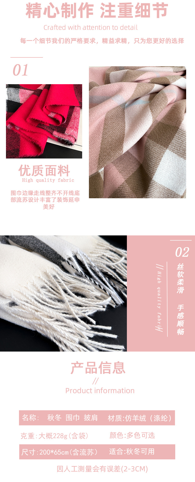 한국 스타일의 모조 캐시미어 격자 무늬 따뜻한 숄과 스카프, 남녀 공통 가을 겨울 패션 다용도 술 스카프스토어 가기