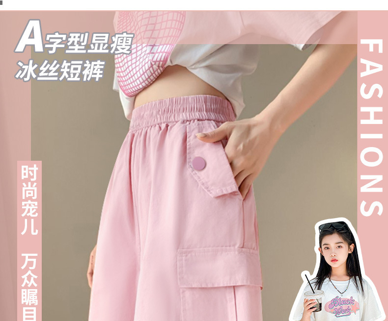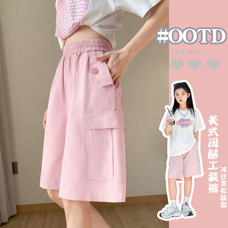 어린이 작업복 여름 얼음 실크 얇은 중간 길이 바지 느슨한 여자 자른 반바지 외부 착용 여름 소녀 바지스토어 가기