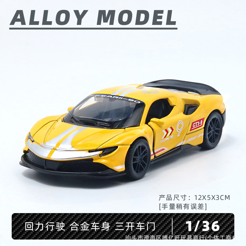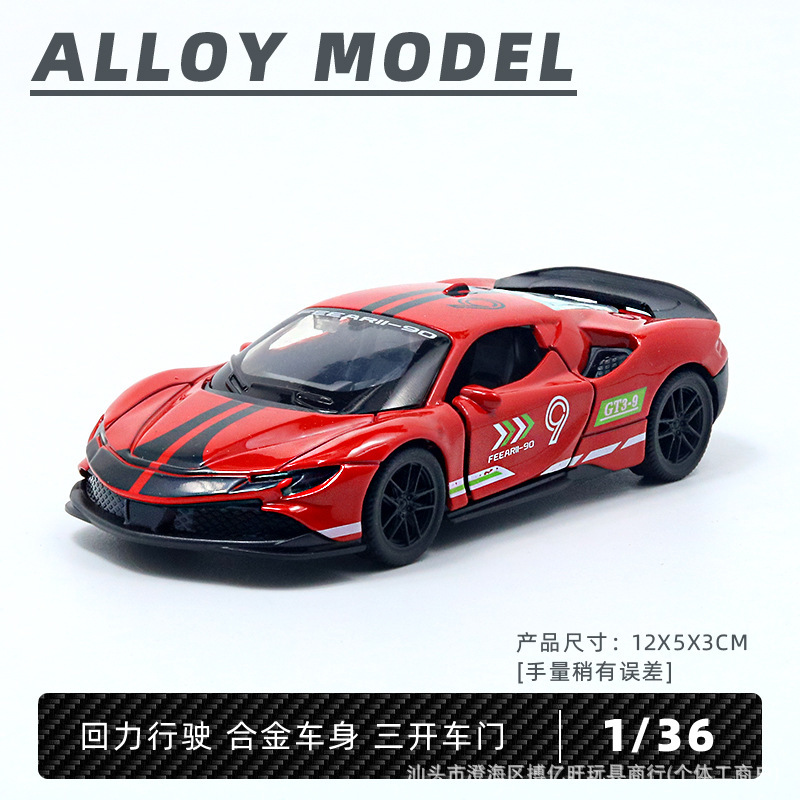 1:36合金儿童回力跑车模型男孩三开门玩具车蛋糕摆件小包装批发