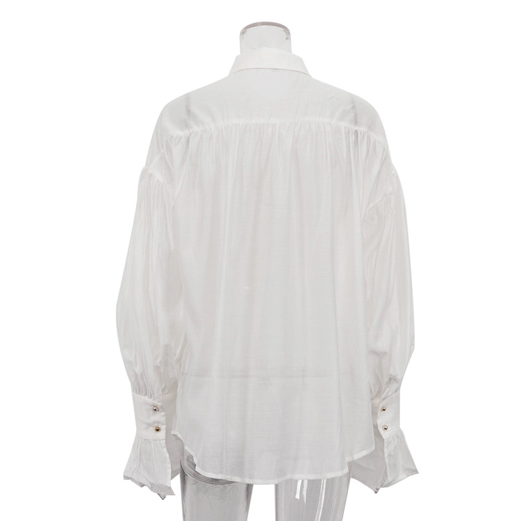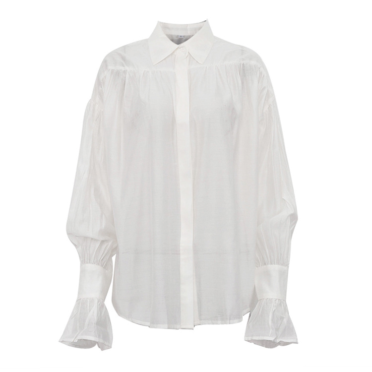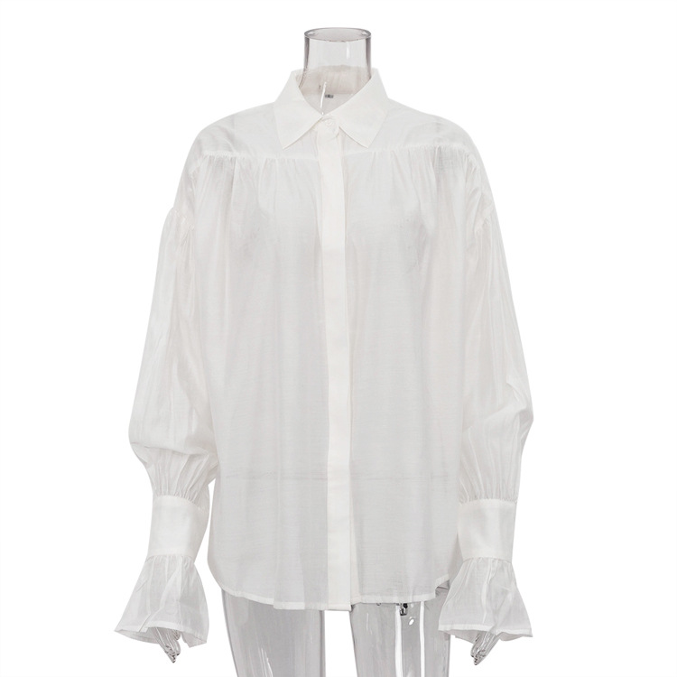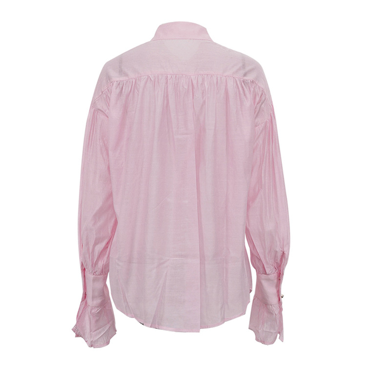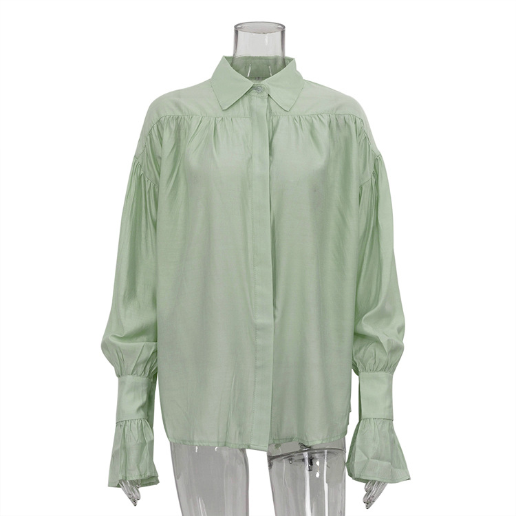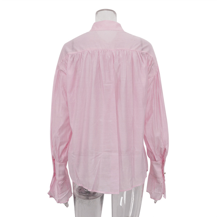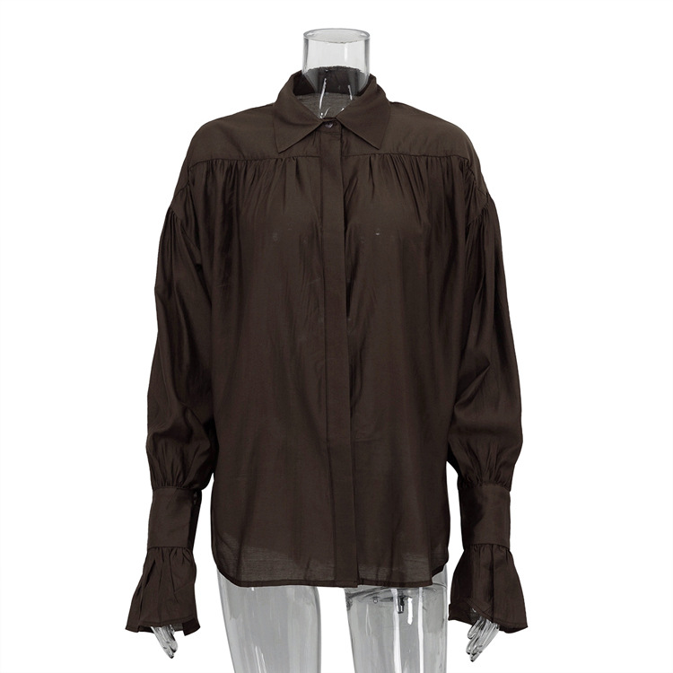 유럽과 미국 여성의 2024 가을 새로운 패션 우아한 루즈 옷깃 솔리드 컬러 올 매치 긴 소매 셔츠 여성용 탑스토어 가기