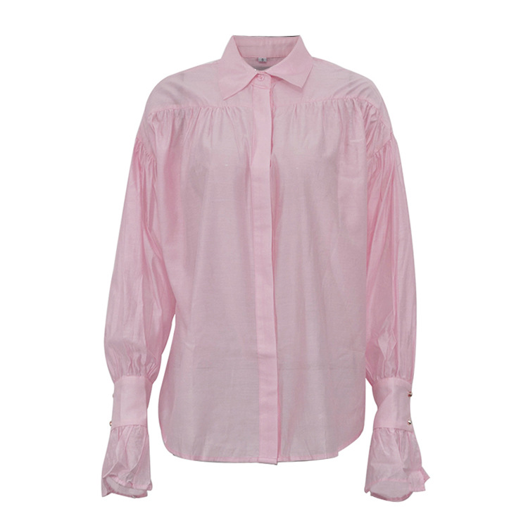 유럽과 미국 여성의 2024 가을 새로운 패션 우아한 루즈 옷깃 솔리드 컬러 올 매치 긴 소매 셔츠 여성용 탑