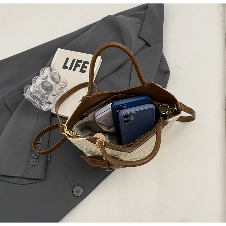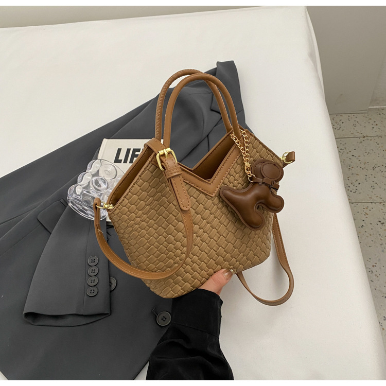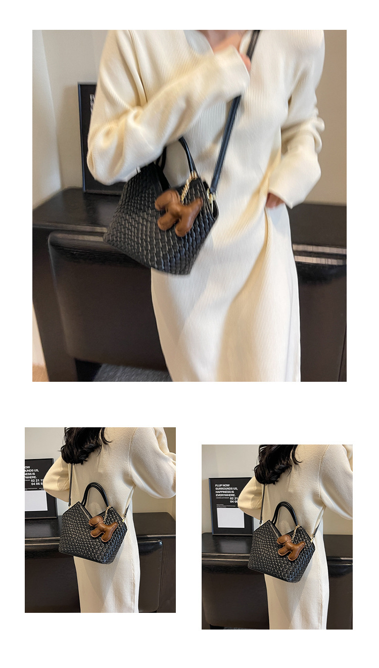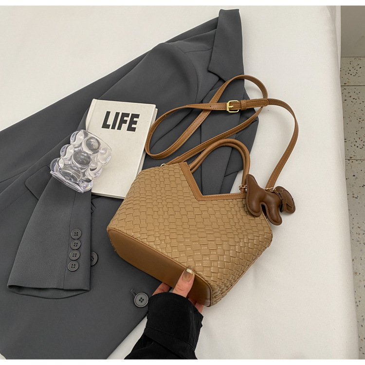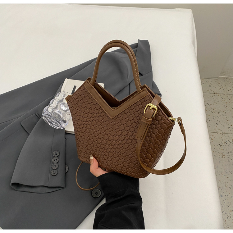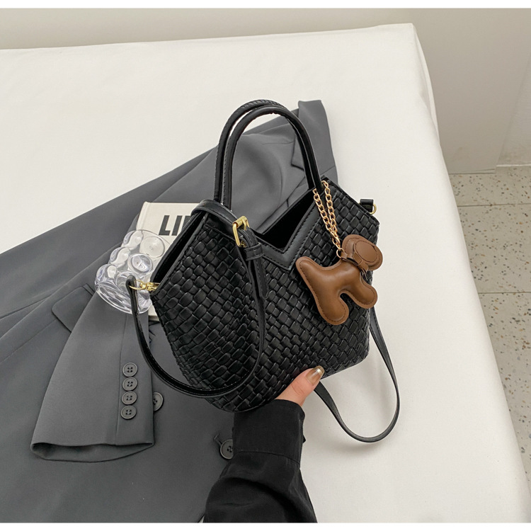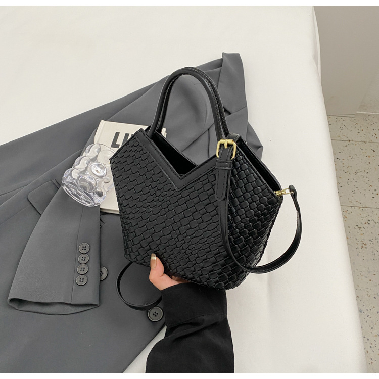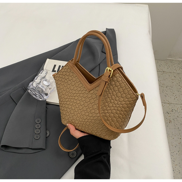 가방 여성의 2024 새로운 어깨 크로스 바디 여성 가방 패션 짠 패턴 인터넷 인기 라이트 럭셔리 하이 엔드 니크 버킷 백스토어 가기
